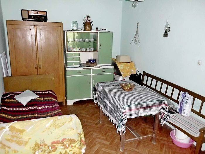 Stolarija je starija, drvena, prozor do ulice ima rolete, a podovi su u betonu i jedna soba ima drveni pod.