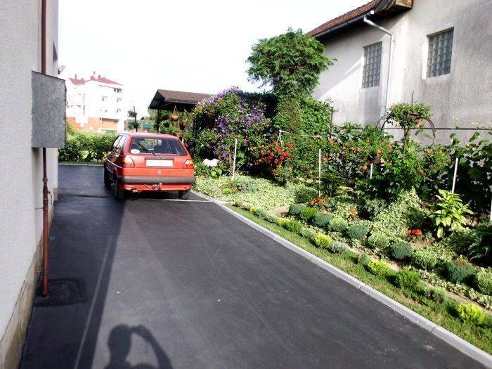 Ulaz na posjed je asfaltiran, pored je predivno ukrasno bilje, iza kuće je u ključu lj. kuhinja, garaža, ostavna prostorija, drvarnica, dio za životinje i vrt.