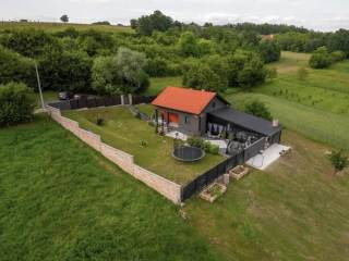Fasada je stiropor 8 cm, stolarija ALU sa roletama i komarnicima, grijanje peć na drva, podovi u keramici i laminatu, krovni pokrov crijep, ispod ploča.