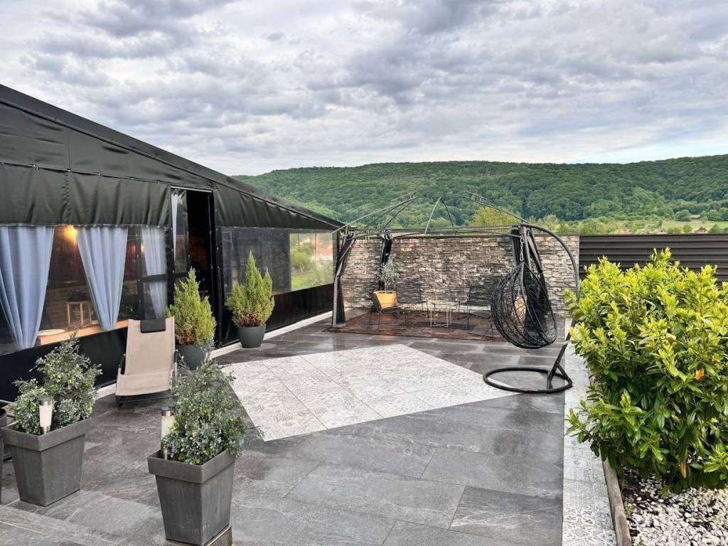 Vani je lijepa, popločena terasa, a dvorište je potpuno ograđeno i pruža sigurnost za djecu!