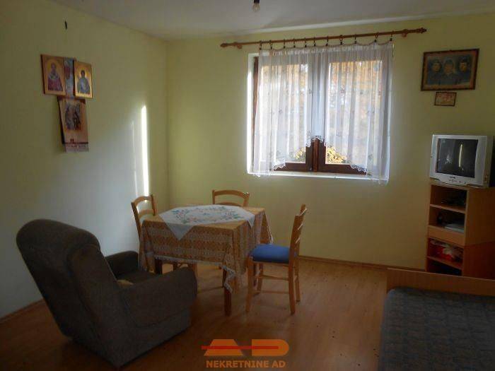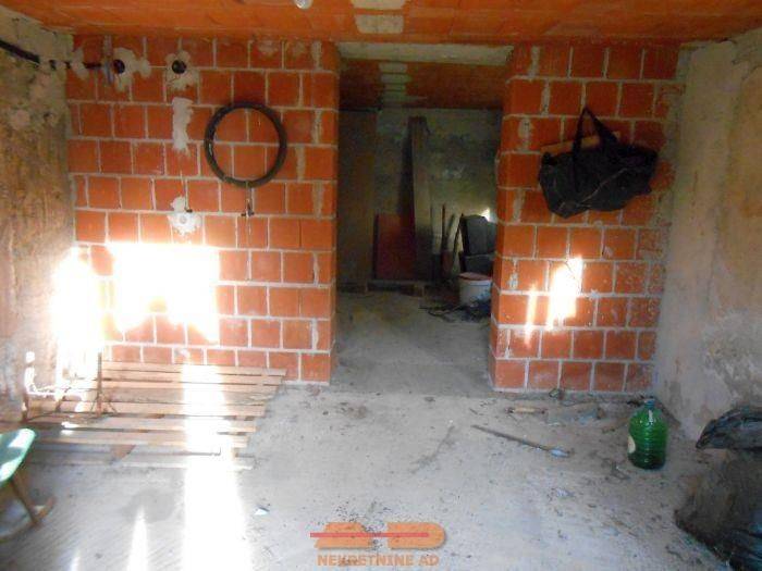 Krovište je betonska ploča + crijep, podovi su u pločicama, laminatu i glazuri, a stolarija je drvena sa izo staklima i šaluzinama.