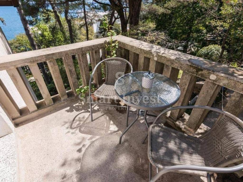 OPATIJA – LUXURY APARTMENT WITH SEA VIEW, GARAGE AND STUDIO APARTMENT For sale is a beautifully decorated apartment of 122.70 m2, located in an elegant villa surrounded by a spacious shared garden filled with Mediterranean plants and palm trees, which creates a peaceful and pleasant atmosphere. This villa consists of only two apartments, and the apartment in question occupies the entire top floor. The apartment consists of three spacious bedrooms, a living room, a kitchen, a bathroom and a balcony from which a beautiful, unobstructed view of the sea is offered. The interior is decorated with great attention to detail, combining elegance and functionality. The heating is oil-fired central heating, which ensures a pleasant stay throughout the year. The apartment also comes with a studio apartment of 18 m2 with a separate entrance, ideal for guests, rental or as additional space for personal needs. A garage parking space ensures privacy and comfort, and there is also an additional outdoor parking space. The spacious garden, situated on a plot of 1,898 m2, provides the perfect oasis of peace and space for relaxation or family recreation. This exceptional property combines luxury, privacy and functionality, perfectly suited for comfortable living near the sea and all amenities in one of the most attractive locations in Opatija. For more information and viewing appointment, call: +385/99/320-0008 ID CODE: 15283 Katarina Žiganto Agent s licencom Mob: +385/91/3200021 E-mail: katarina@smart-invest.hr www.smart-invest.hr