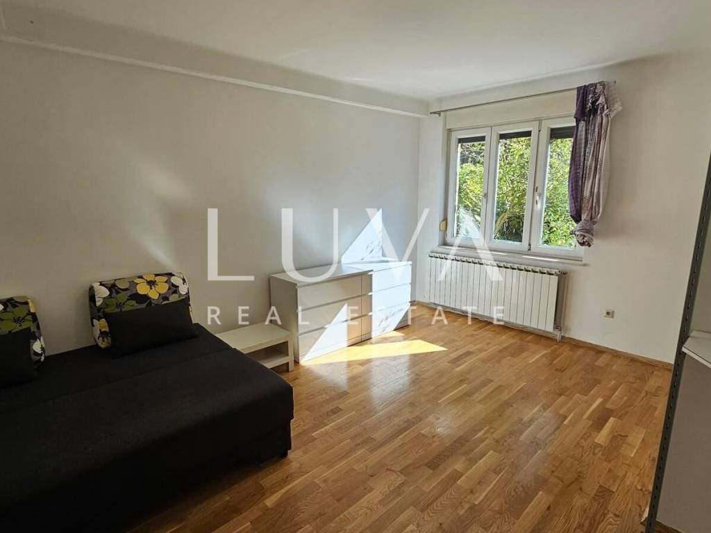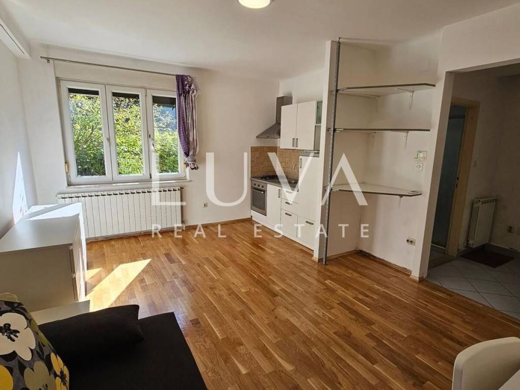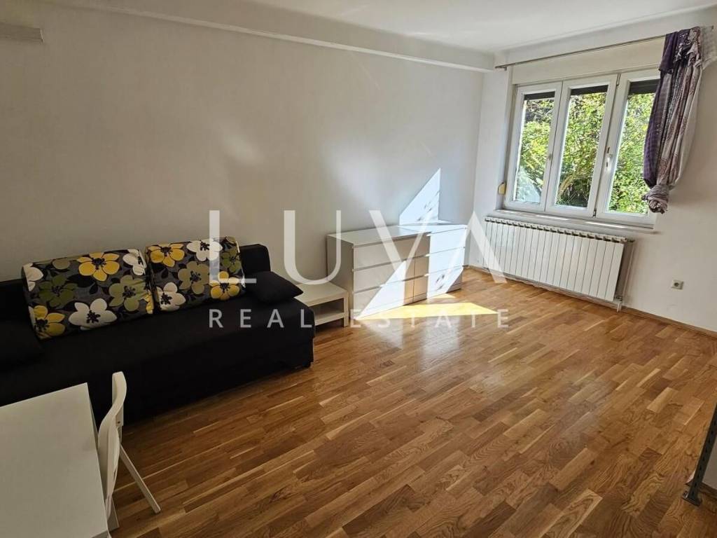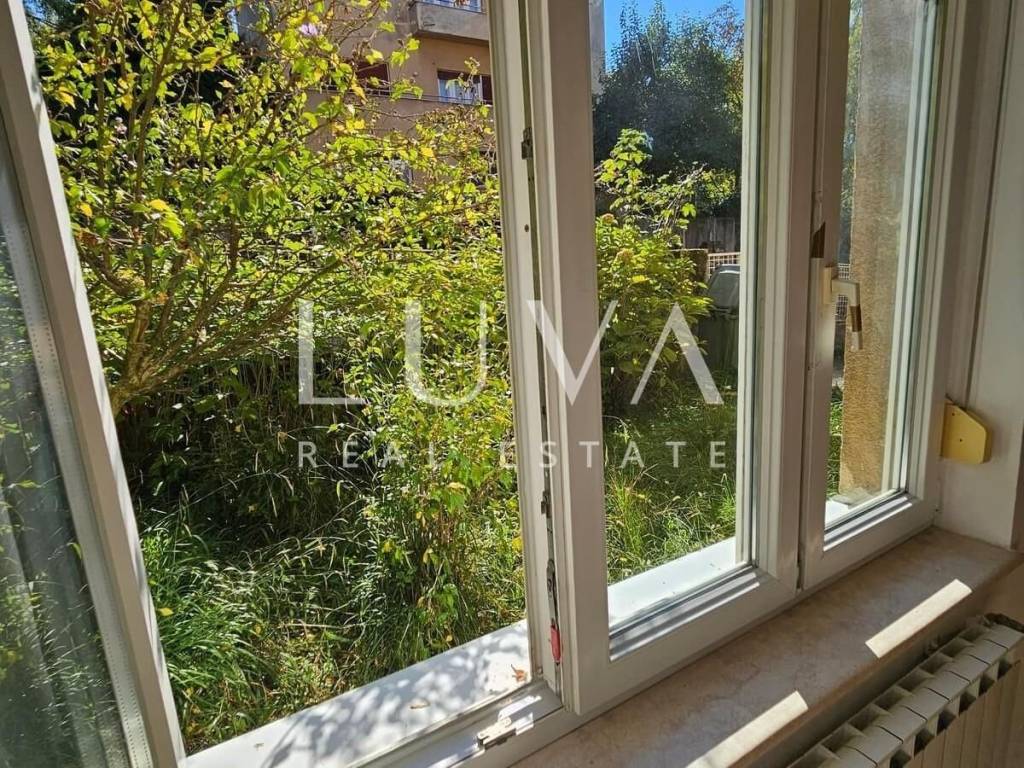 A 30 m² ground-floor apartment (not a basement) in a high-quality building (green safety rating) is available for rent. The property is fully enclosed, ensuring privacy despite being on the ground floor. The location is excellent—right in the city center, yet in a quiet cul-de-sac surrounded by greenery. The apartment has security doors and is available immediately.