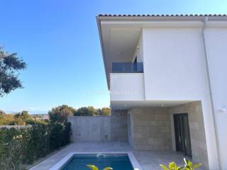 House with swimming pool, area of ​​108.81 m2, consists of ground floor and first floor. On the ground floor there is an entrance porch, covered terrace, entrance area, toilet, storage room and living room with kitchen and dining room, while on the first floor there are three bedrooms, two bathrooms, hallway and covered terrace.