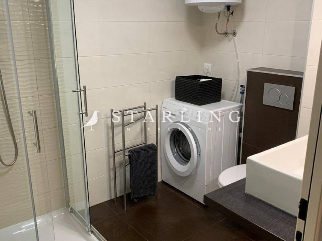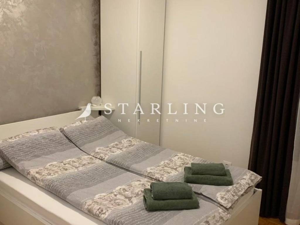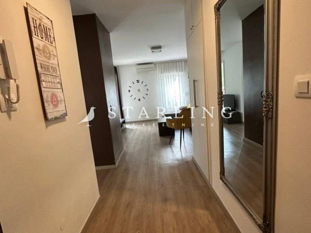The apartment is furnished with high-quality materials and custom-made furniture.