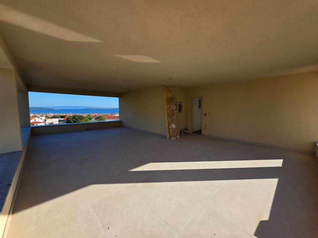 Stan je smješten na 2. katu manje stambene zgrade i proteže se na cijeloj etaži. Čini ga unutarnji stambeni dio od 74,27 m2, natkriveni balkon površine 7,10 m2 i lođa površine 4,39 m2. Postoji mogućnost kupnje i velike natkrivene terase površine 62,20 m2 s koje se pruža očaravajući panoramski pogled na more, Split i obližnje otoke.