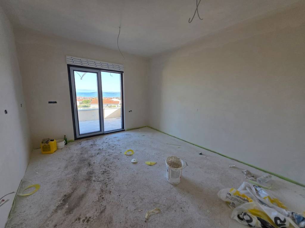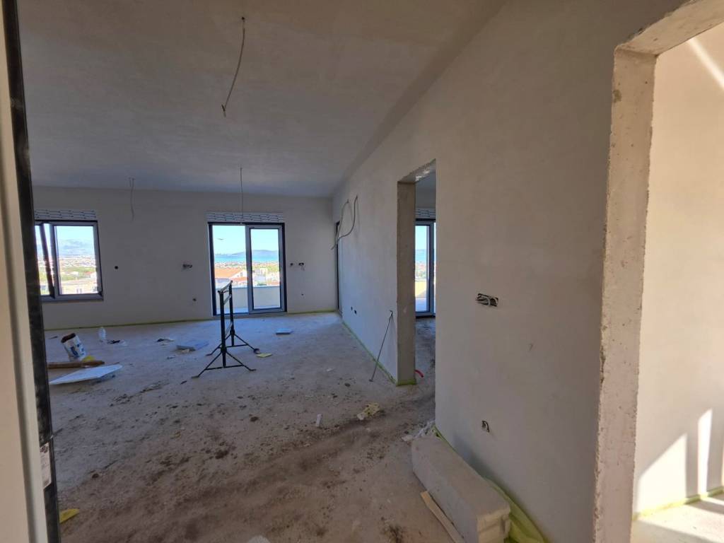 Prodaje se dvosobni stan površine 85,76 m2, smješten na drugom katu manje stambene zgrade izgrađene 2025. godine u Kaštel Novom.