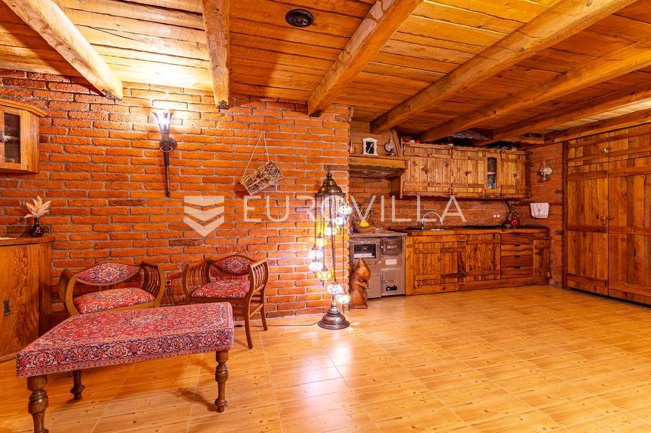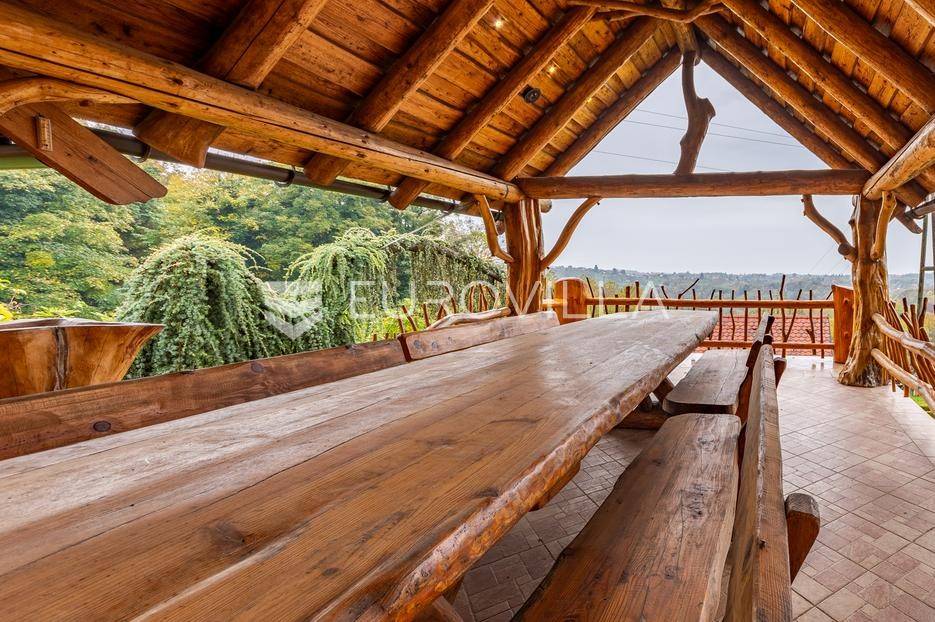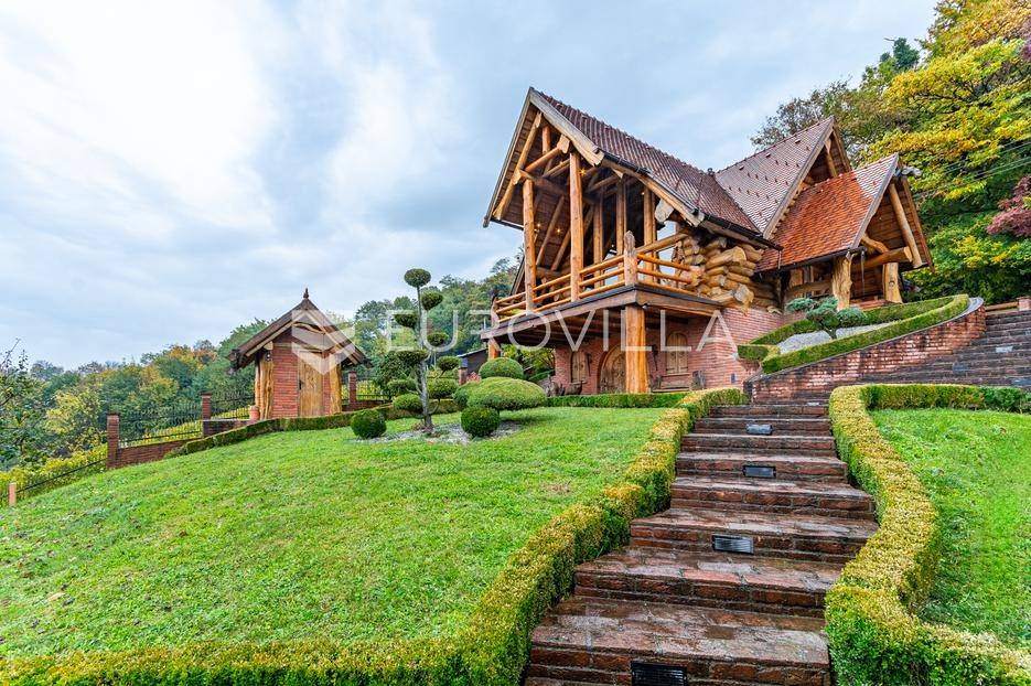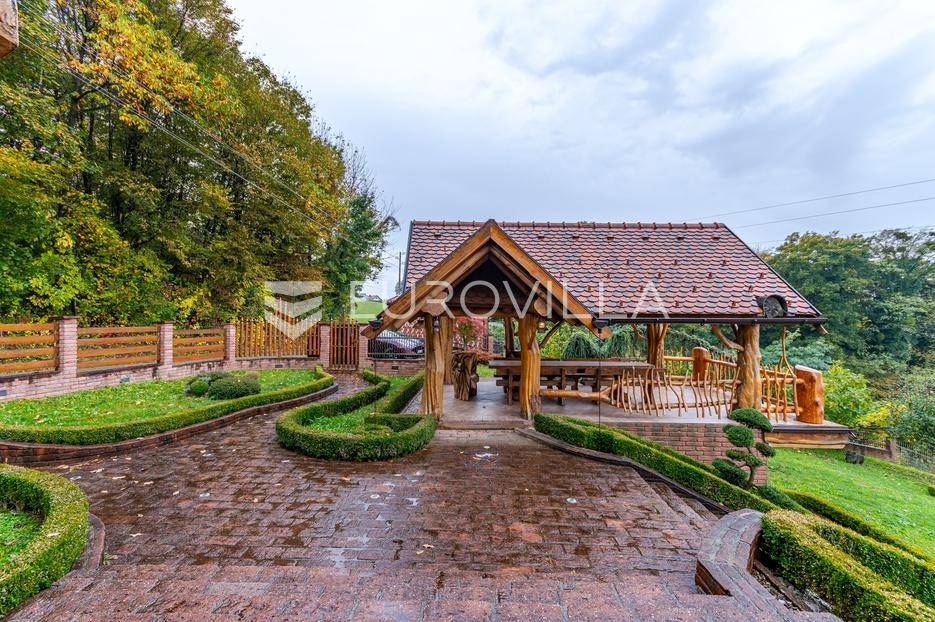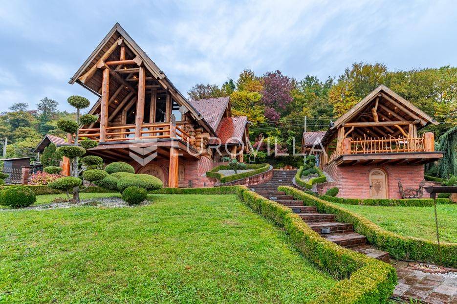 Varaždinske Toplice, Martinkovec raskošno imanje spremno za useljenje.Drvena kuća površine 190 m² sastoji se od prizemlja i galerije do koje vodi lift. U ulaznom prostoru nalazi se blagovaonica, kuhinja, kupaonica i dnevni boravak s izlazom na terasu. Na galeriji se nalazi spavaća soba i garderoba. Podrum uključuje fitness prostor, kuhinju, blagovaonicu, kutak za odmor, garderobu i vešeraj.Na imanju se nalaze i tri pomoćna objekta - sjenica, radionica i vanjski WC. Ova jedinstvena brvnara, koju mnogi smatraju jednom od najljepših u Europi, nudi više od same nekretnine - pruža iskustvo.Na parceli od 3.500 m², okruženoj šumom i vinogradima, nalazi se pažljivo uređeno zemljište. Vlasnicima pruža potpunu privatnost, impresivan panoramski pogled i bujnu zelenu oazu s brojnim voćkama - jabuke, šljive, smokve, aronija, maline i još mnogo drugih.Za više informacija i dogovor oko razgledavanja, slobodno se javite.