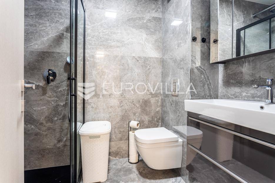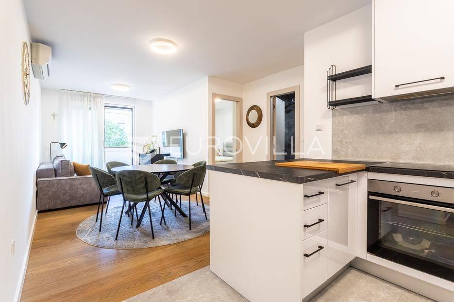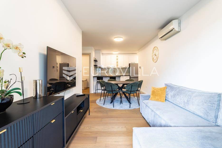 U mirnom, ali dobro povezanom dijelu Žnjana, u najam se nudi dvosoban stan površine 46 m², smješten na drugom katu nove stambene zgrade s liftom.Sastoji se od kuhinje s blagovaonicom i dnevnim boravkom s izlazom na prostranu lođu, dvije spavaće sobe i kupaonice.Stan je južno orijentiran, što osigurava obilje prirodnog svjetla i ugodan, sunčan ugođaj tijekom dana.Komforu dodatno doprinosi podno grijanje postavljeno u kupaonici, što stan čini ugodnim i tijekom zimskih mjeseci.U cijenu najma uključeno je garažno parkirno mjesto unutar objekta.Nekretnina se nalazi u mirnom okruženju, u blizini svih važnih sadržaja — trgovina, škole, javnog prijevoza, plaže i rekreacijskih zona.Za sve ostale informacije i upite, stojimo Vam uvijek na raspolaganju.