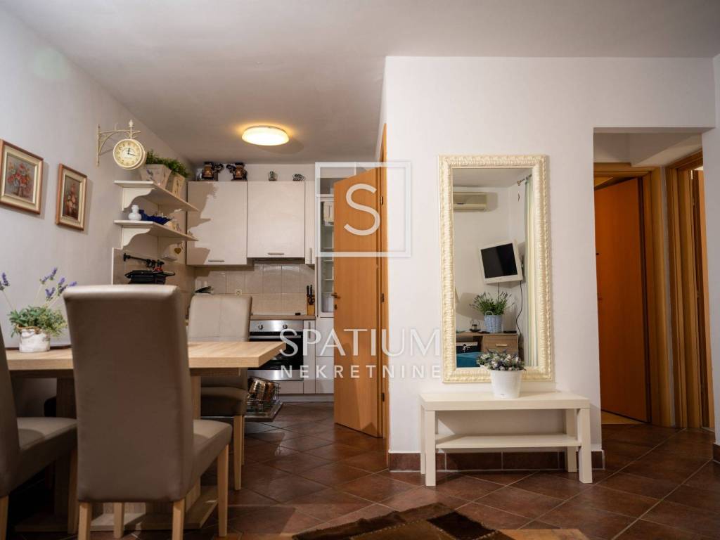 NOVI VINODOLSKI, we offer an apartment in a great location, second row from the sea and the beach. It is located on the ground floor of a small and well-maintained residential building. The area is 47.12m2, it consists of a hallway, kitchen with dining area, living room, bedroom, pantry, bathroom and loggia. The apartment has one parking space. Furnished and air-conditioned.