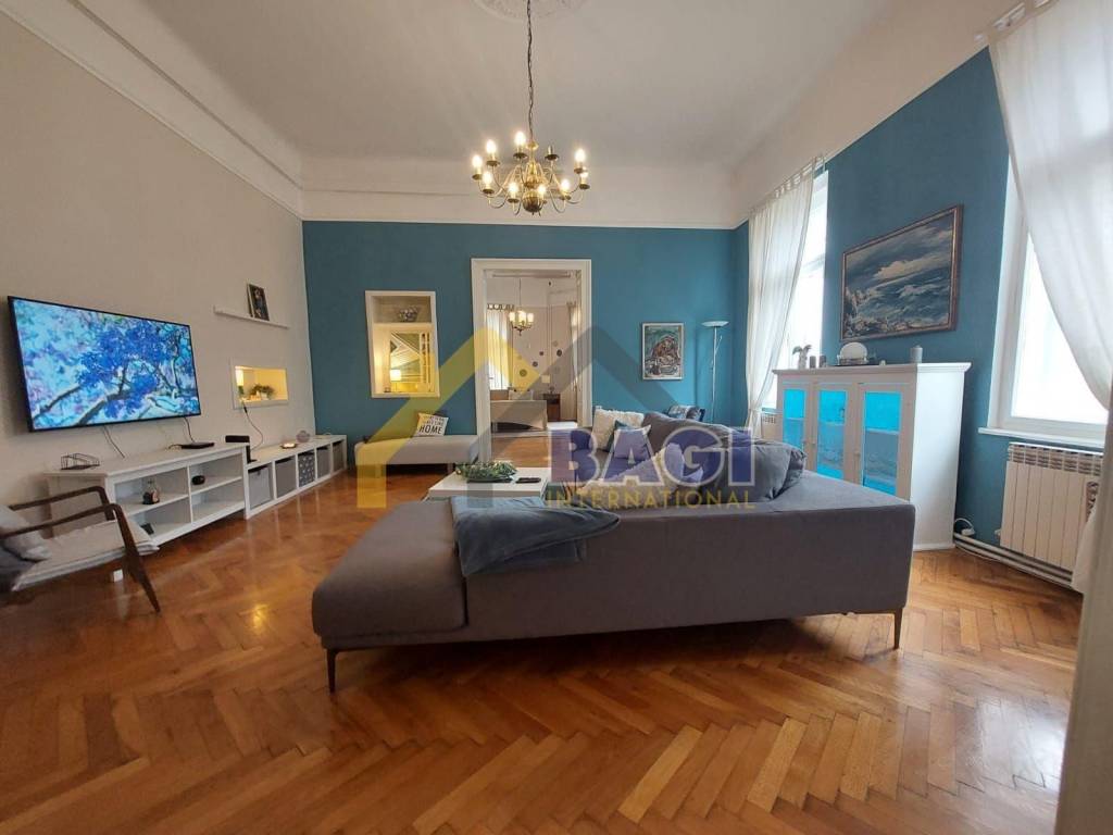 In the center of Zagreb, a beautiful apartment of 136m2 is for rent. It consists of one living room, separate kitchen, one bathroom and one toilet, and three bedrooms. Two bedrooms have access to a private balcony.