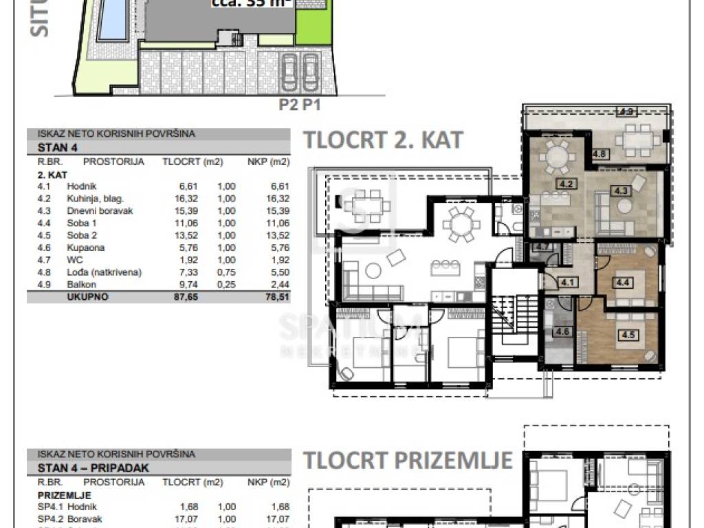 MALINSKA, we have an apartment in a new building with an area of 83.13 m2 with a swimming pool and a studio apartment of an area of 44 m2 on the ground floor. The apartment is located on the first floor and consists of an entrance hall, a kitchen, a dining room, a toilet, two bedrooms, a bathroom and a spacious living room with access to a large terrace, which consists of a covered and an uncovered part, from which there is a view to the sea. The property also includes a studio apartment on the ground floor of 44 m2, which consists of one bedroom, bathroom, open space with kitchen, dining room and living room with access to the terrace. The apartment has a spacious garden of 201 m2 with a pool of 24 m2. It will be equipped with underfloor heating, PVC carpentry with mosquito nets, electric blinds, air conditioners, ceramics and high-class sanitary ware. "Malinska is the pearl of the Kvarner Islands" was written by the professor of the University of Vienna, L. Waagen in 1905. Tourism, which is today the main economic activity, started in Malinska at the turn of the 19th and 20th centuries, thanks to the development of railway and steamship traffic. The first recorded guests were hunters, Austrian and Hungarian aristocrats and Rijeka patricians. They came to the vicinity of Malinska to hunt snipe and other feathered game. Mediterranean culture, as the culture of the Croatian island, is immersed in family, architecture, music and food - its cultivation, processing, preparation and consumption. As the local population engaged in fishing, growing olives, vines, figs and sheep, the tradition was nurtured and proudly lives on today. The interesting and diverse surroundings of Malinska reveal many natural attractions and old historical sites dating back to ancient times. For other information, please contact us with confidence.