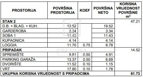 MALI LOŠINJ, CENTER, we offer an apartment with a garden and a courtyard in a new building. It consists of a living room with a kitchen and a dining room that opens onto a loggia, a bedroom, a bathroom and a hallway, and it has an outdoor parking space and a storage room of 6.30 m2. The apartment with a loggia has a total usable area of 47.51 m2, a courtyard of 22.66 m2, a garden of 15.68 m2 and a parking space of 13.64 m2.