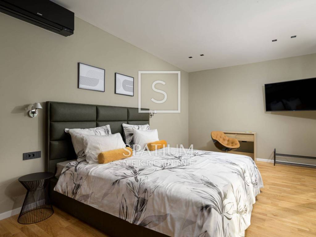 GROŽNJAN, ISTRIA, we offer a newly built, luxurious designer villa with a swimming pool in a natural environment, complete privacy, 2170m2 garden, with a view of the landscape of green fields and forests. Modern villa with a living area of 300m2, 222m2 of covered terraces and 160m2 of uncovered terraces. It consists of two floors, ground floor and first floor connected by an internal staircase. Ground floor: kitchen, dining room and living room with an open concept space, with access to the terrace, guest toilet, laundry with access from both the inside and outside, and a boiler room with an outside entrance. 1st floor: three spacious bedrooms, each with its own bathroom. Each room has access to a covered terrace. Glass walls of large areas ensure a lot of daylight in the space and enable a beautiful view. The decorative fireplace in the living room, which changes color, contributes to the additional atmosphere. Inside the spacious, fully decorated and well-maintained garden there is a swimming pool of 61 m2, a sunbathing area with a waterfall, an outdoor shower, an outdoor kitchen with a covered dining area, a space for socializing, and a parking space for four vehicles. Only high-quality materials and the most modern appliances were used for construction and furnishing, some of the most famous brands are certainly: - Guzzini, Artemide, Ticino for lighting - Florim Bologna for interior and exterior wall panels - Philippe Stark locks / shower - Calligaris Italy furniture - Nef kitchen equipment - Dondi salotti living room - Hespo program 5* bedroom equipment - Hans Grohe bathroom equipment - Axor bathroom equipment - B&: B Italy furniture - Global kitchen equipment - Rosenthal kitchen equipment - Mono A kitchen equipment - Liebher and Bosh kitchen equipment - Kartell Italy furniture - Napoleon kitchen equipment - Deco fireplaces Maribor - Mitsubishi air conditioning. This property meets the most demanding needs with its modern and elegant appearance, luxurious equipment and high-quality construction. An exceptional opportunity to create comfortable family use or a great investment with a safe return. Worth attention!! Grožnjan, a small Istrian town with great cultural significance. A city that lives art, located on a romantic hill surrounded by a beautiful landscape, in the central part of Istria. Known for the preservation and protection of the environment with an emphasis on preserving the traditional Istrian heritage. For other information, please contact us with confidence. Mislav Smolčić mediation assistant +385 91 500 6757 mislav@spatium.hr Vesna Smolčić licensed agent +385 91 571 7682 vesna@spatium.hr Spatium nekretnine +385 51 452 479