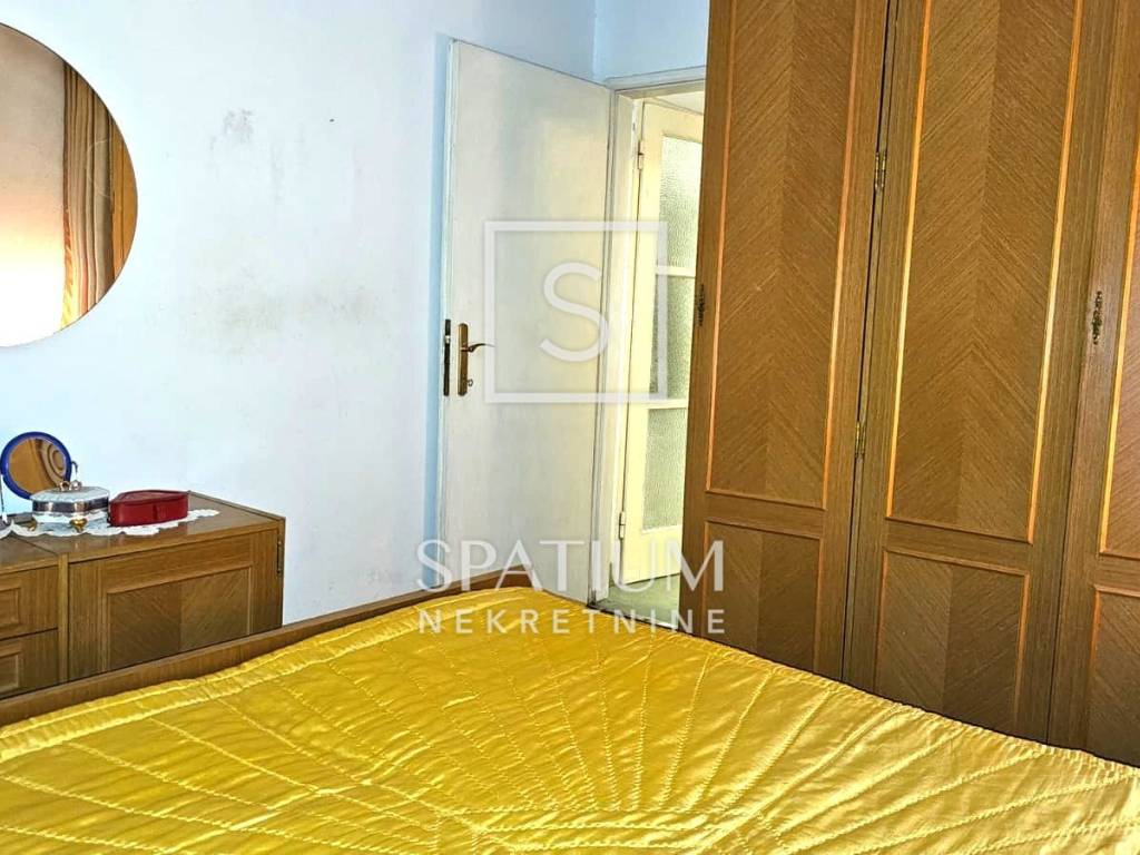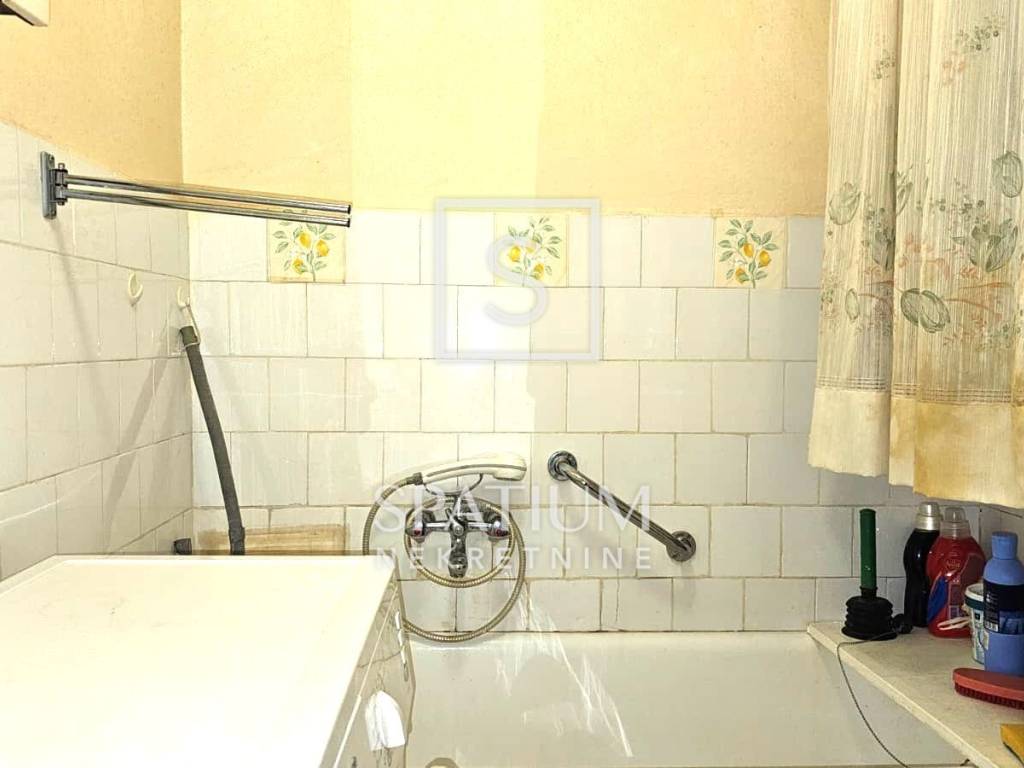 The floors are covered with parquet, terrazzo, and linoleum, while the carpentry is wooden. The apartment has a chimney and the possibility of heating with a solid-fuel stove, while it is currently heated via an air-conditioning unit and a stove. The property requires renovation, allowing the future owner to adapt the space to their own preferences.