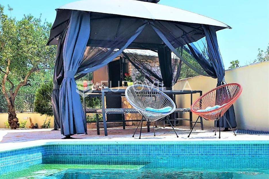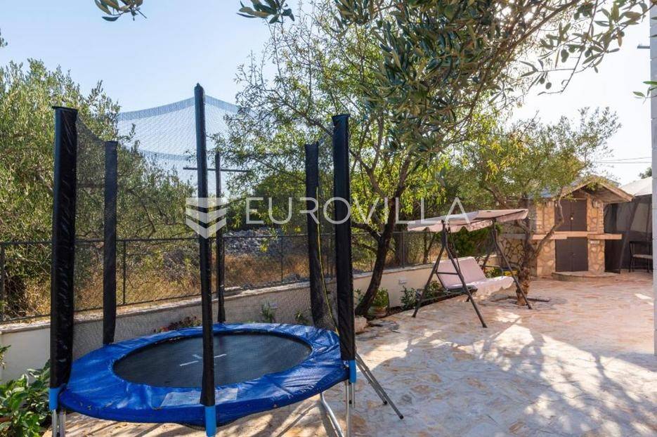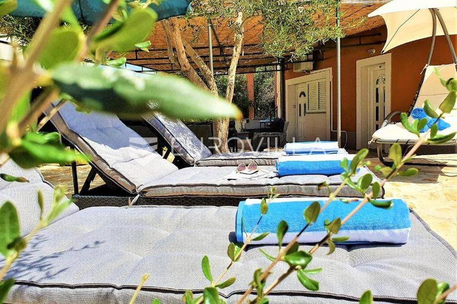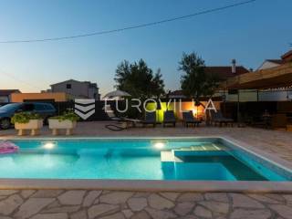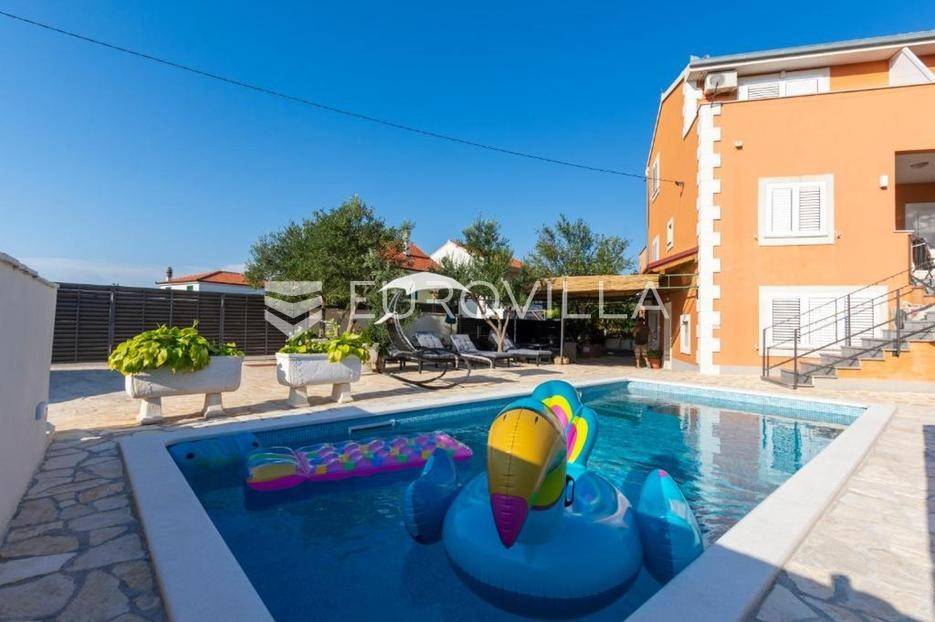 Zečevo Rogozničko, prekrasna apartmanska kuća s bazenom, ukupne površine 236,46 m² izgrađena na parceli od 520 m². Prodaje se potpuno namještena i opremljena, te idealna za odmor ili turistički najam.Kuća se sastoji od 3 etaže. U prizemlju su dva manja apartmana, svaki s jednom spavaćom sobom, kupaonicom te dnevnim boravkom s kuhinjom i blagovaonicom. Osim dva apartmana, u prizemlju je i igraonica sa stolom za biljar, pikadom, konzolom za video igre i ostalim sadržajima. Vanjskim stepenicama dolazi se na prvi kat na kojem se nalazi apartman s dvije spavaće sobe, od kojih jedna ima privatnu kupaonicu, jedne zasebne kupaonice, te dnevnog boravka s kuhinjom i blagovaonicom. Iz boravka se izlazi na prostranu natkrivenu terasu. Na drugom katu nalaze se još dva studio apartmana, od kojih se svaki sastoji od dnevnog boravka s kuhinjom i blagovaonicom, te kupaonice i terase s pogledom na more.Oko kuće se prostire lijep vrt u kojem je komin, te veliki bazen i prostor za sunčanje. Kuća ima 6 parkirnih mjesta, od kojih su dva natkrivena. Mikrolokacija kuće je odlična, na jako mirnom mjestu, a opet samo 500 metara od mora.Sve ostale informacije na upit.