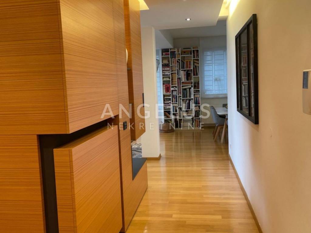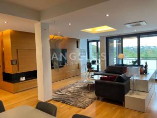 Luxurious furnished apartment with a living area of 108.68 sqm is located on the 2nd floor of the new building with the elevator of 3 in total. It consists of: entrance hall, 2 bedrooms, 2 bathrooms, balcony, kitchen and living room. It is luxuriously furnished, air-conditioned, smart house system, electric shutters.