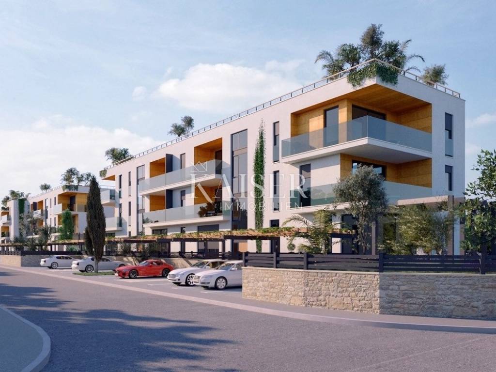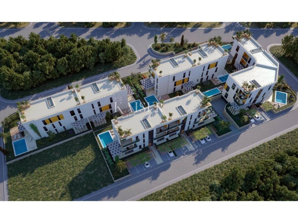 Poreč apartment 177m2 penthouse Spacious apartment of 132m2 in a new building in a quiet location. The apartment consists of: 4 rooms, one of which has its own bathroom and loggia, a separate room for laundry, another bathroom and a large living room connected to the kitchen with access to the terrace. As part of the property, there is also a private roof terrace of 132 m2 with a jacuzzi and an area for enjoyment. The building has a total of 4 apartments, its own parking space in the garage located on the ground floor of the building and another outdoor parking space. The building has an elevator! The apartment has underfloor heating, and it also has air conditioning.
