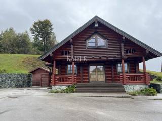 Kaiser Immobilien puts the Honka house on the market with 4,019m2 of construction land. The construction of the house began in 2007 and was completed in 2008. It was built from Finnish pine logs with a diameter of 21 cm. On the ground floor of the house there is a hallway, bathroom, toilet, bedroom, kitchen and living room. There are three more bedrooms in the attic. It also has a basement of 44m2 and a terrace of approx. 18m2. The residential part of the house is 125m2. The house has its own rainwater collection system and drainage into an impermeable collection pit. The heating is wood-burning, it has a built-in Tulikivi fireplace made of Finnish granite and electric radiators. The house is located near the town of Lokva, where you can find all the necessary facilities, a shop, a bank.