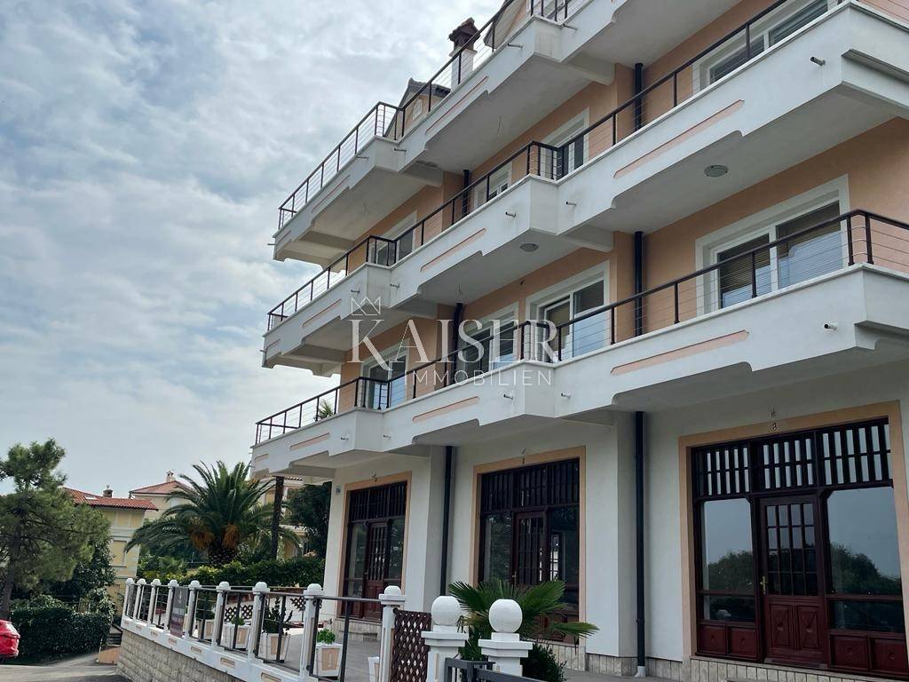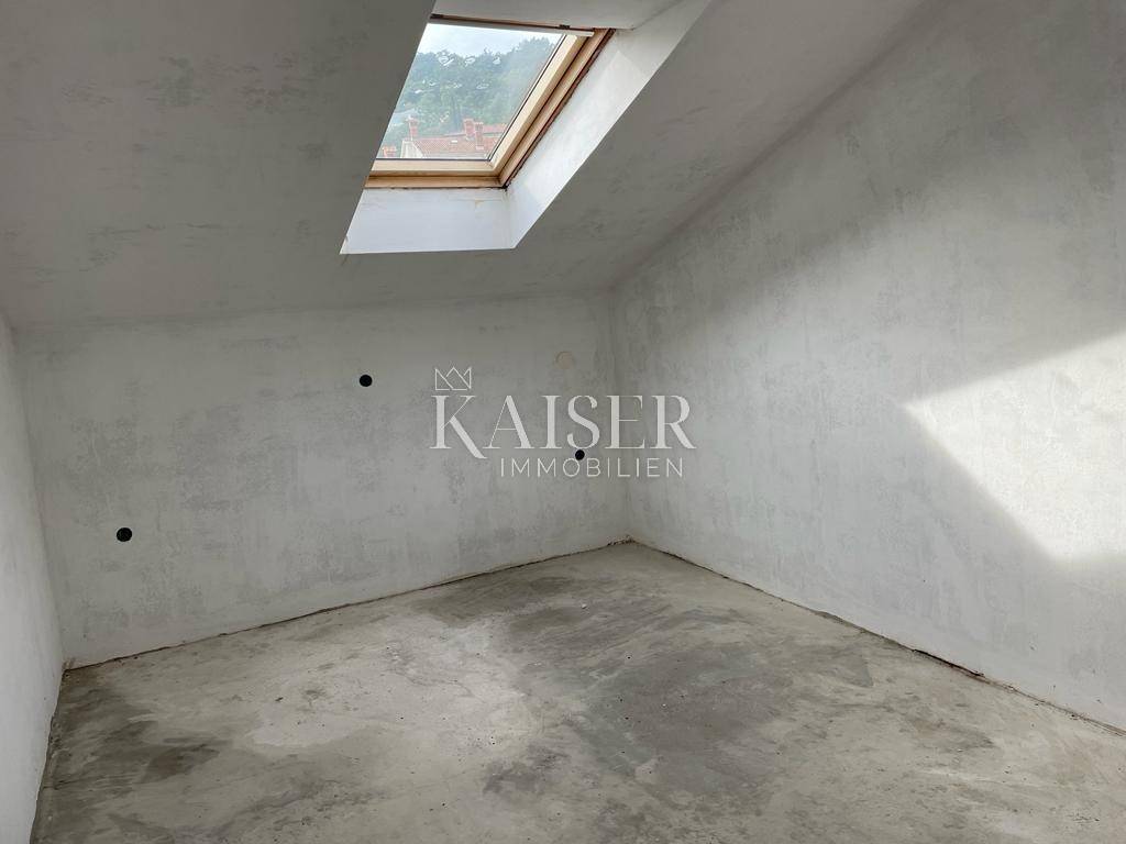 Kaiser immobilien mediates the sale of a two-story apartment in Lovran with a beautiful view of the Kvarner Bay. The apartment with a total area of 120.31 m2 is located on the first floor. The first floor consists of a living room, kitchen and dining room and one bathroom. On the second floor there is a spacious bedroom with its own bathroom. The apartment is in a high state of repair. Complete installations and preparation for the bathrooms were carried out. The apartment has one parking space for use. The location is excellent, only 200 m from the sea, so the building has great potential for tourist rental. The property is clean, the documentation is in order. Close to all important amenities (school, kindergarten, shop, post office, bank...) For additional information, contact the agent.