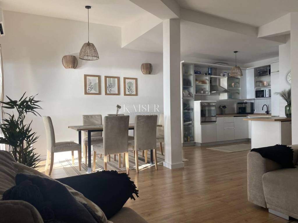 Kaiser Immobilien presents a wonderful apartment in Opatija, only 100 meters from the sea. The apartment is located on the third floor of a residential building with a wonderful panoramic view of the sea, Učka and the islands of Krk and Cres. The apartment has a total area of 139 m2. The total living area is 107 m2, and the apartment consists of: entrance, bathroom, three bedrooms, toilet, dining room, living room, kitchen and closet. The apartment also includes a 16m2 terrace, a 5m2 storage room, and a 11m2 garage space. The apartment is for sale completely modernly furnished. The apartment has a garage parking space, but also an outdoor parking space. It can also be sold without a garage parking space for 379,000e. For additional information, contact an agent.