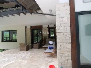 Kaiser-Immobilien Opatija presents a beautiful house in Delnice, in a great location. It consists of a basement with an area of 98m2, a ground floor with an area of 205m2, and a first floor with an area of 180m2. The ground floor consists of an entrance hall, staircase, living room, kitchen and dining room, bedroom, bathroom, toilet, sauna, garage, and storage, and on the first floor there are five bedrooms, a hallway, three bathrooms, and two balconies. An internal staircase leads to the first floor, which consists of a hallway, five bedrooms, three bathrooms, a dressing room, and two balconies, to which two rooms have access. The house is made of top quality materials. The heating is underfloor, with electric heat pumps, and a fireplace. It is possible to install solar panels on the roof. Delnice is an idyllic place in the heart of nature, at 698 meters above sea level, with a fantastic climate and wonderful landscapes. In the immediate vicinity are the National Park Risnjak, the picnic area and viewpoint Petehovac, the valley of the Kupa River. There are many opportunities for various outdoor sports activities, such as adrenaline sports, cycling, rafting, hunting and fishing, horseback riding, and snow sports. For any additional information or viewing please contact the agent at +385 (0)99 673 1852