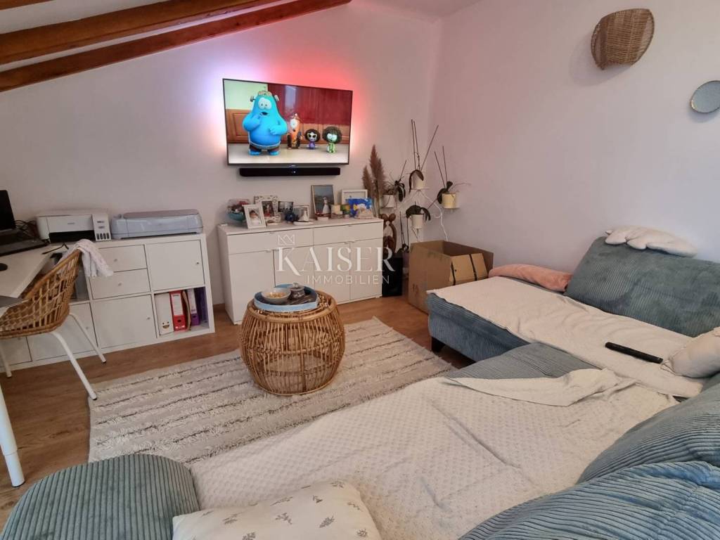 Kaiser Immobilien presents a wonderful apartment in Novi Vinodolski, only 500 meters from the sea. The apartment is located in the attic of a residential building with a total of 5 apartments and has a total area of 101.39 m2. The apartment is fully equipped with electricity, water, drainage, external insulation and facade, and roofing. Two Velux skylights with a 15-year warranty were installed, Styrodur, wool, paneling and Knauf were used for insulation. The apartment consists of: Living room and kitchen - 31.67m2 Room - 12.90m2 Room - 12.63m2 Corridor - 7.24m2 Bathroom - 9.10m2 Terrace - 23.05m2 Entrance stairs - 4.80m2 The apartment is heated and cooled on two Daikin air conditioners that can heat a total of 120m2 of space. The apartment is sold fully furnished, and it also has one parking space and a common area in the garden where there is a fireplace and a garden house for socializing, as well as a children's area. The location of the apartment is close to all amenities, 500m from the sea, 30m from the shop, and 300m from the city center.