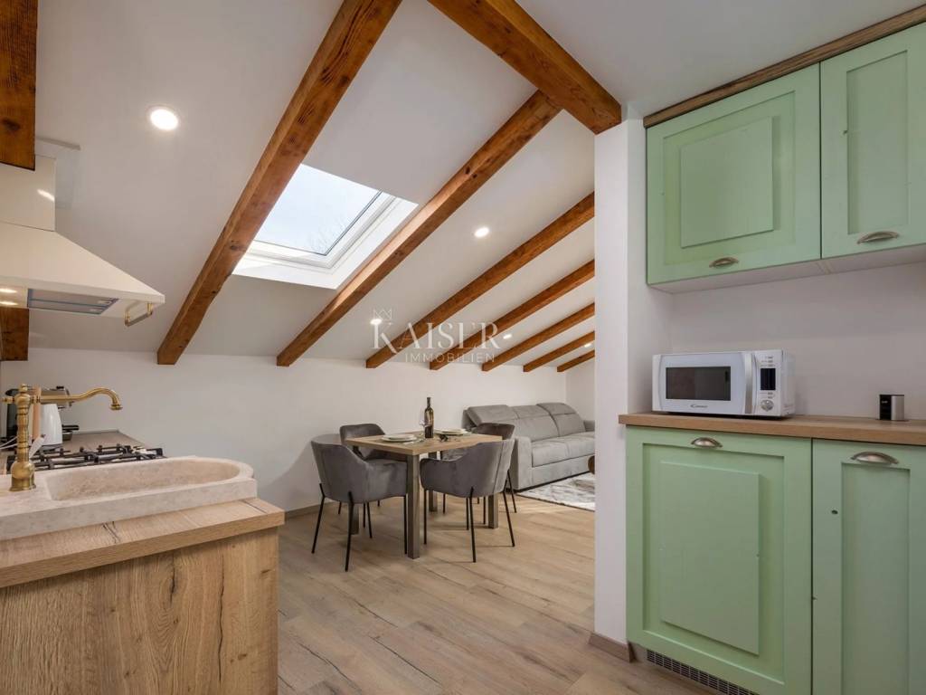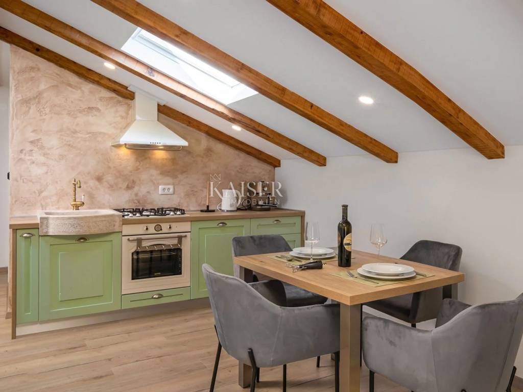 The real estate agency Kaiser Immobilien from Opatija is putting on the market a beautifully furnished apartment in Čavle, close to Rijeka, with an area of 47 m². The apartment is located on the first floor and consists of one bedroom, living room with kitchen, bathroom and balcony. The apartment is fully furnished and equipped with top quality kitchen appliances (hob, oven, refrigerator, dishwasher) and appliances, including air conditioning. The apartment is ideal for couples, singles or small families, and is characterized by a peaceful and green environment. The proximity of Rijeka allows excellent connection with the city center. The intermediary fee for the tenant is 1 month's rent + VAT. The brokerage fee covers all services related to the rental and is charged when the first legal transaction is concluded. For more detailed information, please contact: Toni Knežević Tel: +385 91 5766 628 E-mail: toni@kaiser-immobilien.hr