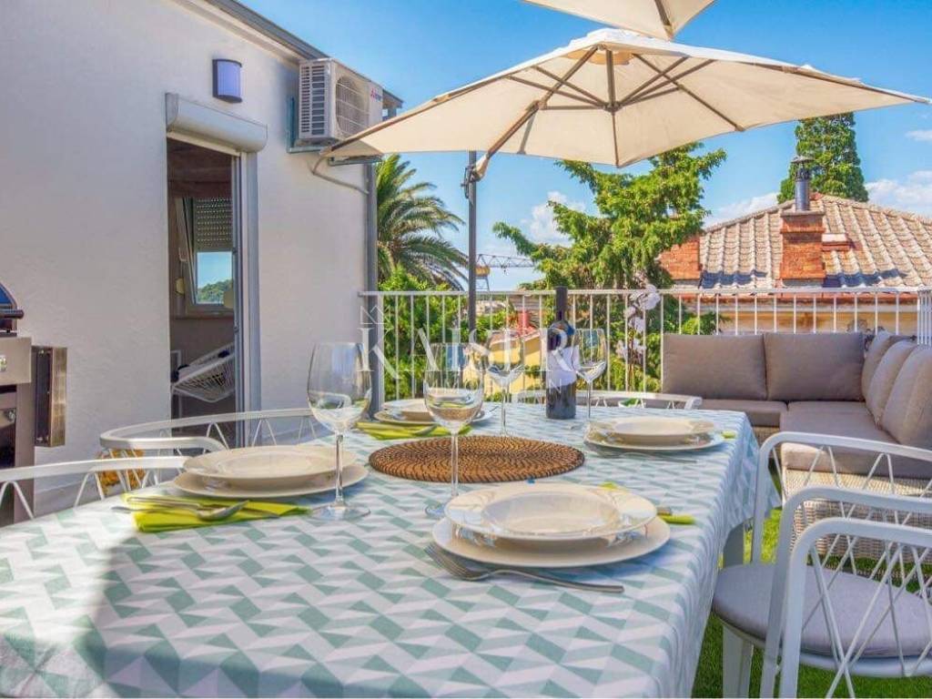 In the very center of Mali Lošinj and just a few minutes walk from the beautiful beach, Kaiser Immobilien proudly presents a beautifully decorated apartment with a breathtaking sea view. Located on the third floor of a small, well-maintained building, this apartment offers the perfect combination of modern design, comfort and functionality. Its renovation used top-quality materials, carefully selected to achieve a high standard of equipment and comfort. It consists of an elegant entrance hall that leads to a spacious and bright bedroom, a luxurious bathroom with a walk-in shower, and a fully equipped kitchen that is open to the living room, creating the perfect space for relaxation and family gatherings. The living room is airy, bright and equipped with modern details, and it is possible to exit to both terraces. This apartment is particularly attractive because of its two spacious terraces. The smaller terrace (9 m2) faces west, with a romantic view of the harbor, perfect for enjoying magical sunsets. On the other hand, a larger terrace (24 m2) facing east offers all-day outdoor enjoyment, ideal for quiet morning coffees or relaxing during the day with a view of the sea. The apartment is luxuriously equipped with the highest quality materials and carefully selected details that guarantee superior comfort and longevity. It has new heating systems installed, including underfloor heating in the bathroom, kitchen and living room, which ensures a comfortable temperature throughout the year. Top-quality materials in the renovation include modern ceramics, and sophisticated kitchen and bathroom elements. The apartment also comes with a 4 m2 storage room, as well as its own parking space, making this space extremely practical and pleasant to live in. This property is a real rarity on the market and is the perfect choice for anyone looking for a living space by the sea or as an investment in a prestigious location. Given its top-notch equipment, beautiful location and spacious terrace, this apartment will certainly not wait long for a new owner. Contact us and secure your chance to become the owner of this unique apartment that offers everything you need for a comfortable life by the coast. LOCATION: Mali Lošinj - a unique microclimate, untouched nature, the healing scent of pine trees and clear sea are just some of the features that adorn the island of Lošinj, known worldwide as the island of vitality. Located on the east coast, this picturesque town enchants with its beauty and charm. In addition to beautiful beaches covered in dense shade and hidden coves, the town attracts numerous visitors with numerous restaurants and taverns with traditional cuisine. This is a place where you will discover the hidden treasures of the Mediterranean every time. Distance from the property to the town: Mali Lošinj - Rijeka Airport, 102 km Mali Lošinj - Zagreb Airport, 268 km Mali Lošinj - Ljubljana, 224 km Mali Lošinj - Vienna, 605 km Mali Lošinj - Prague, 937 km Mali Lošinj - Munich, 632 km The agency commission for the buyer is 3% + VAT. The commission covers all services related to the purchase and is paid upon conclusion of the first legal act. If you want this beautiful house to become your new home or are looking for a property for business purposes in the form of rental, please contact me at 00385 976839504, or at the email address: ilijana@kaiser-immobilien.hr.