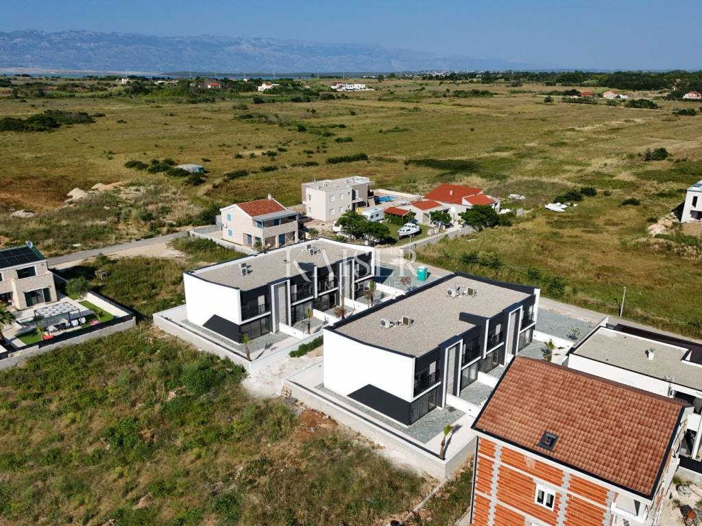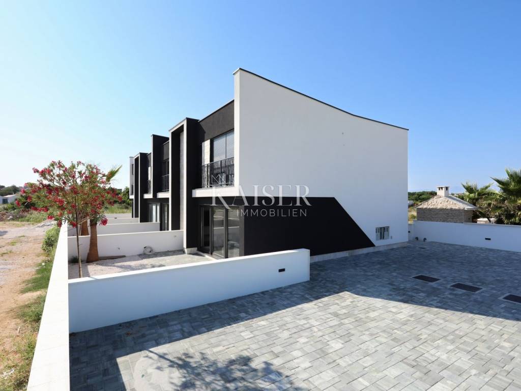 Kaiser Immobilien offers an attractive terraced residential building consisting of four modern apartments. This property is located in a peaceful and quiet part of Privlaka, only 400 meters from the town center and the seashore, which makes it an ideal choice for family life or a quality vacation. Each apartment in the building is designed with an emphasis on functionality, contemporary design and a high level of comfort and privacy. The apartments are spacious, full of natural light and have an optimal layout. Each apartment has its own garden and terrace, and the building has secured parking spaces. We offer a two-story apartment marked S2, with a total gross area of 158.90 m², while the calculated usable area is 108.04 m². The apartment has two parking spaces and a garden of 33 m², which further increases the value and quality of use of the space. At the entrance there is a covered entrance that leads to the hallway, and then to the bathroom and laundry room. The central part of the lower floor consists of a spacious living room connected to the kitchen and dining room in an open-space concept, which opens onto a covered terrace and garden - a perfect place to relax and spend time outdoors. Internal stairs lead to the first floor, where there is an additional bathroom and three comfortable bedrooms that provide privacy and peace for every family member. The apartment is sold fully furnished, including a kitchen with appliances, a dining table with chairs, a corner sofa, a TV in the living room, a washing machine, a built-in wardrobe in the hallway, as well as beds and built-in wardrobes in all three bedrooms. This level of equipment allows the buyer to move in immediately, without additional costs and organization of decoration. The floors are already finished and covered with quality materials: ceramic tiles are laid in the hallway, kitchen, bathrooms and on the terrace, while the living room and bedrooms have laminate floors that provide additional warmth and visual comfort to the space. The windows are PVC with triple-layer glass, roller shutters and mosquito nets, which ensures excellent thermal and sound insulation. The apartment is fully air-conditioned – air conditioners are located in the living room and in all bedrooms, and there is electric underfloor heating throughout the entire apartment, which ensures a comfortable temperature during the winter months. The entrance door is burglar-proof and fire-resistant, which further increases the level of security. The location of the building provides quick access to all important amenities – shops, restaurants, a clinic, a pharmacy, a post office and public transport, while the sea is only a few minutes' walk away. This property is ideal for both family life and as an investment for tourist rental. The apartment is located in Privlaka, a charming Dalmatian village located on a peninsula, known for its sandy beaches, crystal clear sea and proximity to the historic city of Zadar. Privlaka offers the perfect balance between a relaxing life by the sea and the availability of all urban amenities. Its popularity among domestic and foreign visitors is continuously growing thanks to its preserved nature, pleasant atmosphere and excellent transport connections. Proximity to amenities: Privlaka – Nin: 5 km Privlaka – Zadar: 20 km Privlaka – Zadar Airport: 32 km Distance to major cities: Privlaka – Ljubljana: 358 km Privlaka – Budapest: 640 km Privlaka – Munich: 764 km Privlaka – Vienna: 651 km Privlaka – Prague: 925 km The agency commission for the buyer is 3% + VAT and is paid upon conclusion of the first legal act. ID CODE: 128-013 For additional information and to arrange a viewing of the property, please contact: Nina Fabijan