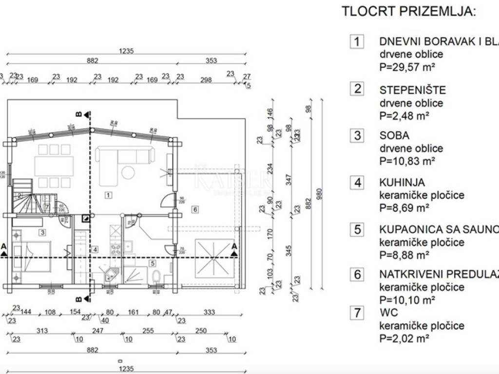 Kaiser Immobilien puts on the market a house completely built from machined logs, 23 cm in diameter. The front of the house is very special, because it is entirely covered in glass walls up to 7 meters high. It offers a spectacular view of nature in all seasons. It is located in a great location near all the attractive places to visit in the Vrelo settlement in Fužine. It is currently under construction, completion is planned for the end of 2023/beginning of 2024. The house consists of ground and first floor. On the ground floor there is a living room, kitchen, dining room, bedroom, bathroom with sauna, two terraces (one from the living room/dining room, the other terrace with a jacuzzi with an exit from the bathroom) and a toilet. On the first floor (high attic) there is a gallery, a corridor, two bedrooms and a bathroom. The total area of the house is 124 m2, while the garden has 418 m2. It has a usage permit. For more questions, contact the agent!