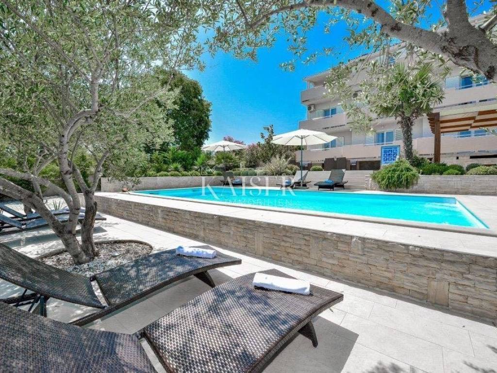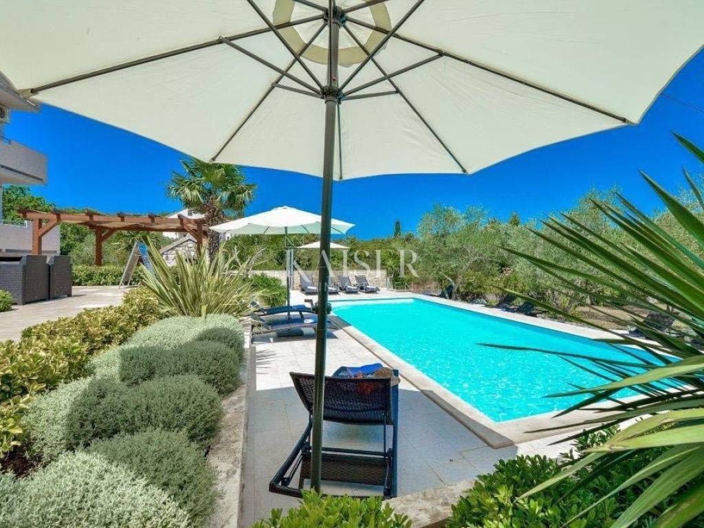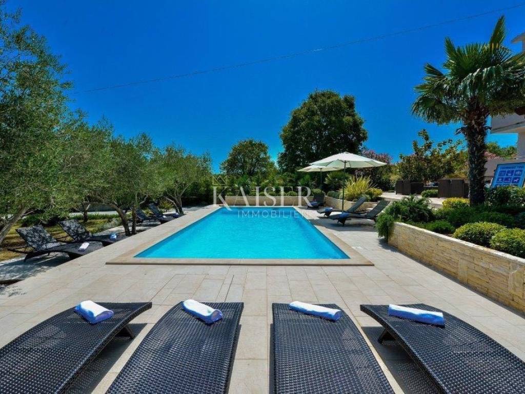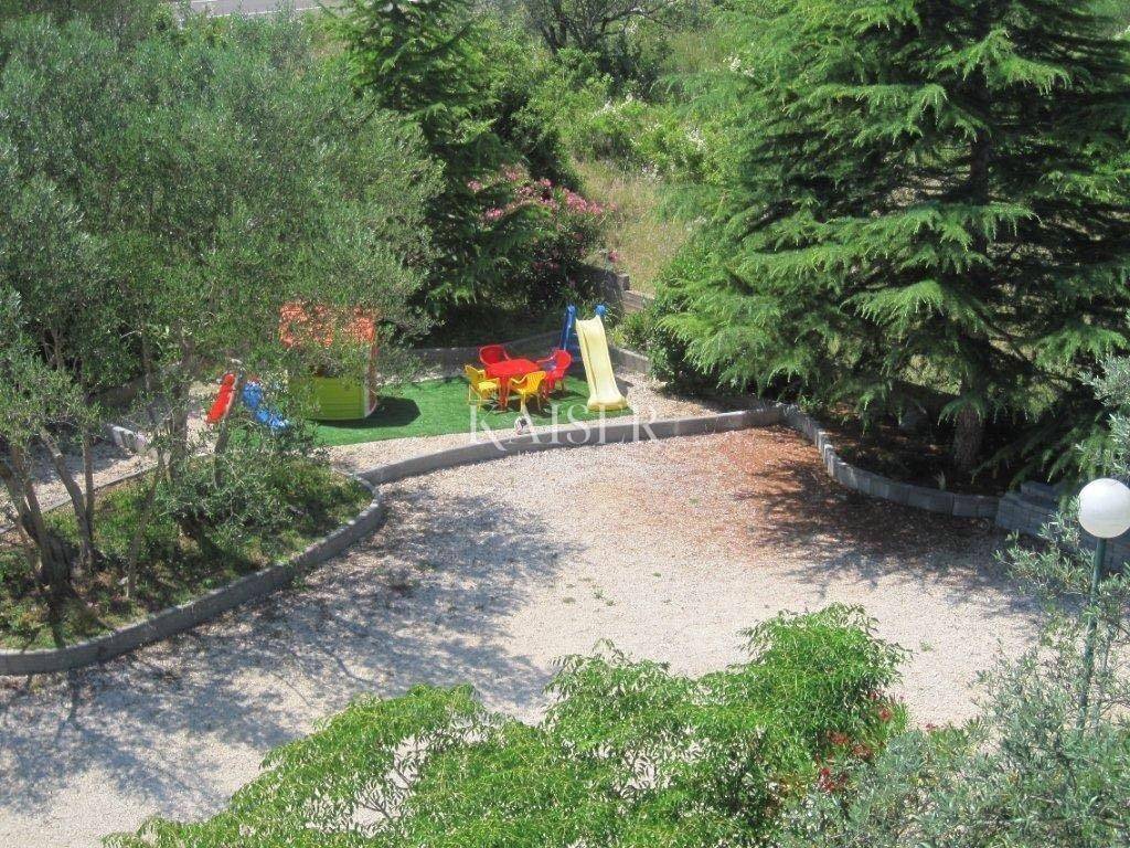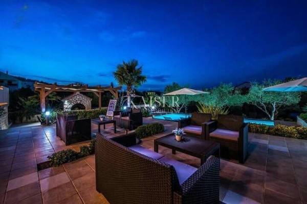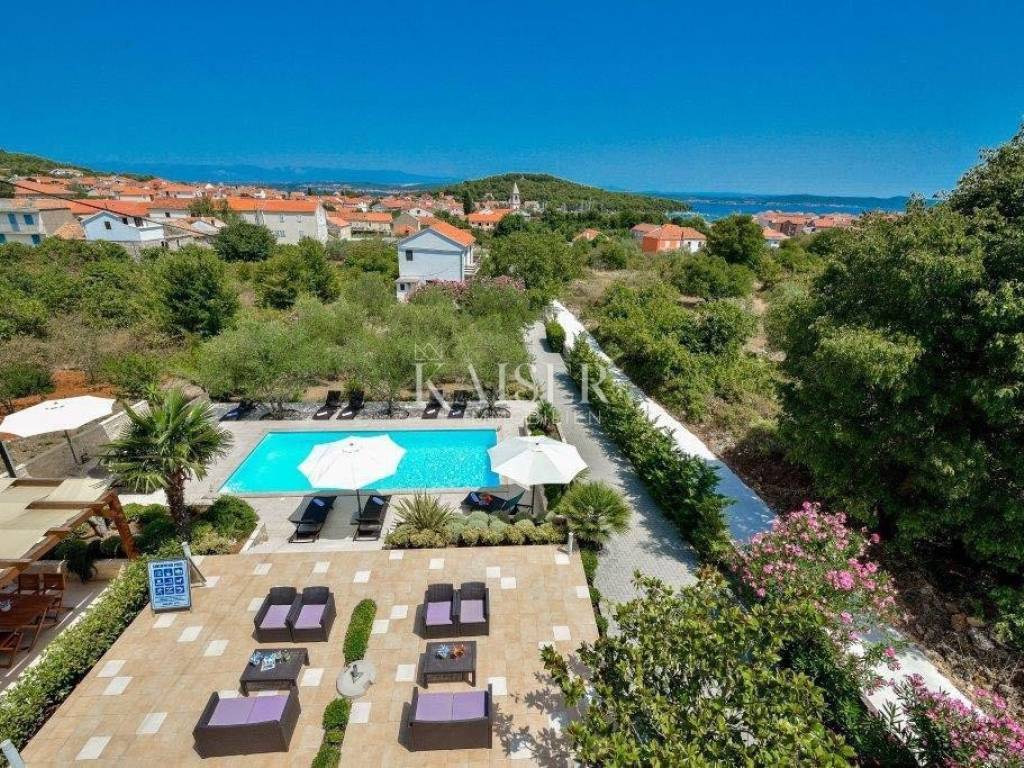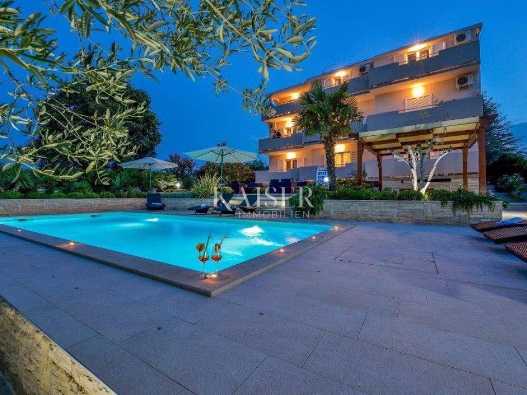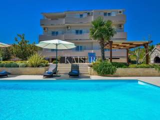 Kaiser immobilien presents you with a beautiful apartment villa located in the picturesque tourist and fishing village of Kukljica, on the southeastern coast of the island of Ugljan. This beautiful apartment villa represents the perfect combination of natural beauty, peace and Mediterranean charm. Thanks to its exceptional position, Kukljica is often called "the gate to the Telašćica Nature Park and the Kornati National Park", as it is located right next to the Ždrelac Pass. The villa is located on elevated terrain above the town center and a picturesque bay, from which there is a captivating view of the Kukljica Bay, the Zadar Channel, the Green Point - Zaglava and the bell tower of the church of St. Paul. Surrounded by Mediterranean herbs, vegetation and plants, bathed in the sun and enriched with the scents and sounds of the island, this villa has been providing its guests with an unforgettable island vacation experience in an established tourist facility for more than 40 years. Access to the villa is provided from the rear, where there is a private parking lot with 10 parking spaces connected to the main island road. From here, a narrow and long street leads you in just five minutes to the picturesque center of Kukljica, full of small cafeterias, gelaterias, restaurants, pastry shops, shops and other important amenities. On a charmingly decorated plot of 1647 m2, there is a villa with a total living area of 594 m2, which extends over four floors - basement, ground floor and two upper floors. The villa has eight spacious apartments built in two parts with two entrances, forming one whole. In the first entrance there are five apartments, in the second there are three - seven two-bedroom apartments, living room + bedroom and one three-bedroom apartment, living room + two bedrooms. All apartments have a balcony, equipped kitchens, a living room with a kitchen for one-bedroom apartments, while three apartments have a separate kitchen from the living room, bathroom with shower, TV, WiFi and air conditioning. At the top of the villa there is a three-bedroom apartment with two bedrooms, two bathrooms, a spacious living room with a terrace and a kitchen with a dining room and a terrace. The villa has a basement with a separate entrance and a storage room where tools and equipment for maintaining the environment and the pool are kept. A special atmosphere in the apartment villa is provided by a seasonal outdoor pool of 40 m2, surrounded by a sunbathing area and a luxurious garden with Mediterranean herbs and olive trees. The outdoor area also includes a lounge terrace for relaxation, a space for socializing by the fireplace and barbecue, and a space where a more demanding outdoor kitchen for preparing Mediterranean specialties can be set up. The villa also offers a children's playground, making it an ideal place for a family vacation. This property was built in 1984. A skilled investor or future owner, with minimal modifications to the interior and some additional investment and interventions on the exterior, can modernize this unique property for tourist purposes or into multiple individual residential units because the brick walls between the residential units at certain positions in the building can easily be connected into a single, larger unit. The building offers more technical options and designs, which gives the future owner the flexibility to create a unique property according to their visions and wishes. This unique villa offers everything you need for an authentic, comfortable and unforgettable stay on one of the most beautiful Croatian islands. Kukljica, like the rest of Ugljan, has an exceptionally indented coastline and has several bays and beaches with the following names: Otrić, Kostanj, Gnjojišća, Kukljica, Ždrelašćica, Kunčabok, Vela and Mala Sabuša, Jelenica, Baćina draga. Significant distances: Airports: Zemunik / Zadar Airport 13 km Split Airport 130 km Distances from EU cities: Ljubljana 305 km Trieste 312 km Vienna 625 km Budapest 688 km Munich 750 km The agency commission for the buyer is 3% + VAT. The commission covers all services related to the purchase and is paid only in the case of purchasing a property, upon conclusion of the first legal act. For more detailed information and a viewing of the property, please contact: Ivana Skoblar Tel: +385 98 973 11 54 E-mail: ivana.skoblar@kaiser-immobilien.hr Property code: 136-8