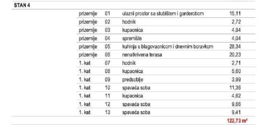 Objekt D - Ukupna obračunska kvadratura - 121.93m2 - SLOBODAN (rubni stan)