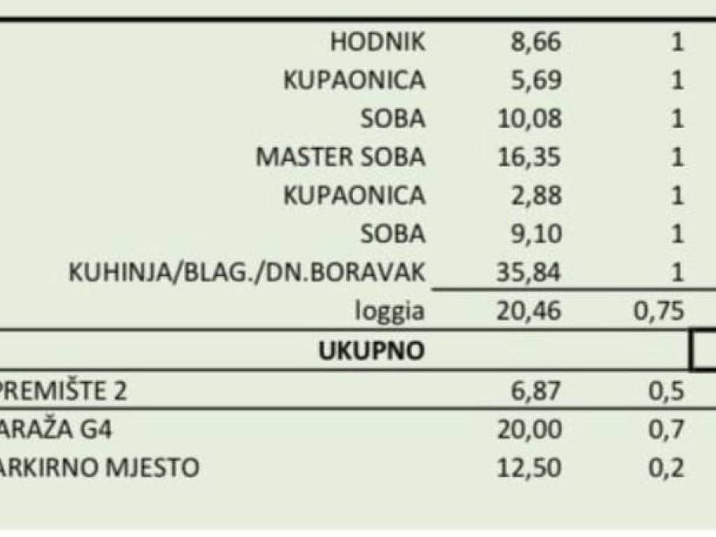 Garaža, spremište i vanjsko parkirno mjesto su obračunati u kvadraturi