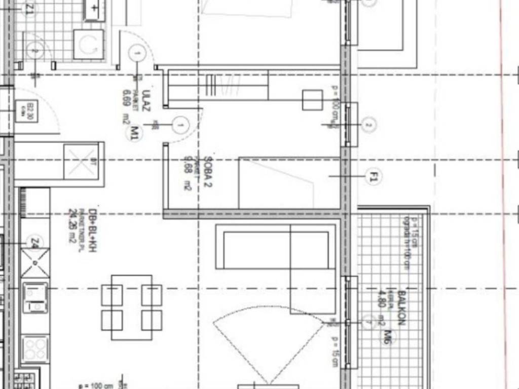 dnevni boravak/blagovaonica/kuhinja - 24,26 m2