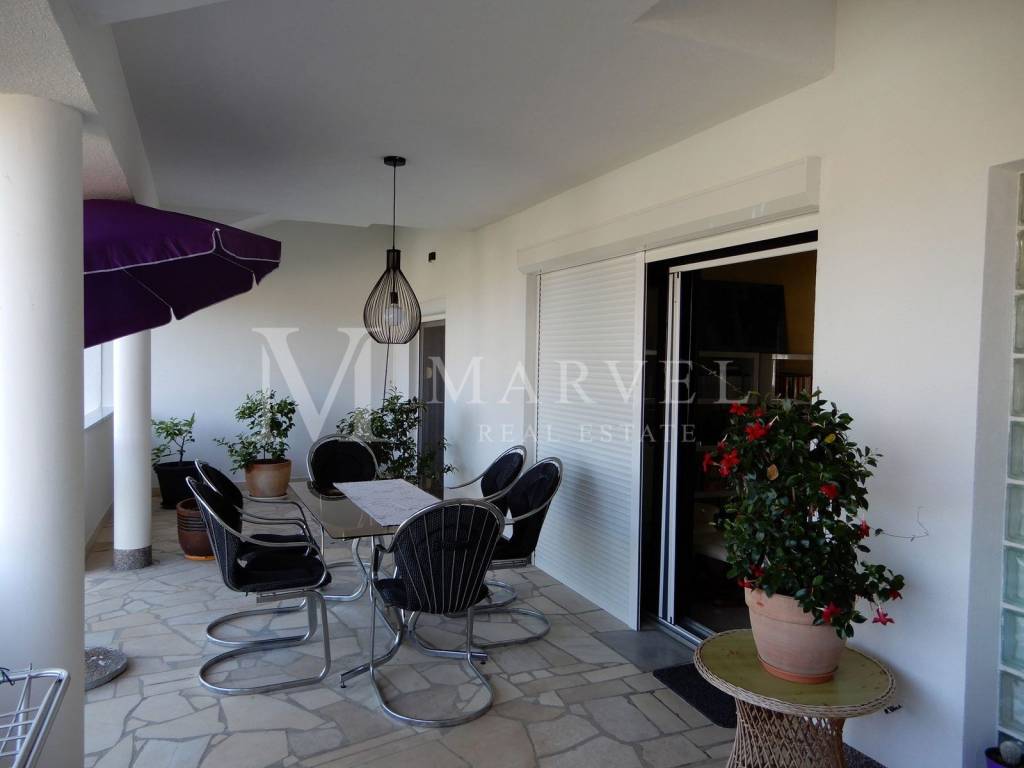 The first floor features a spacious apartment of 100 m with a large living room, dining area, kitchen, bedroom, bathroom, and covered terrace of 35 m. The high attic, measuring 80 m, offers privacy with two bedrooms, a living room, a wardrobe, a bathroom, and an 18 m terrace.