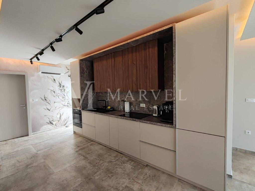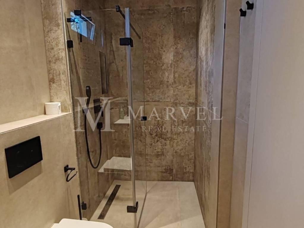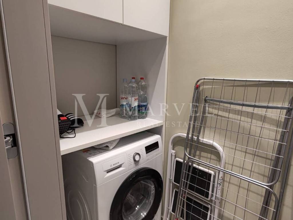 The apartment is sold fully furnished with custom-made furniture, high-quality equipment, and special lighting. It has underfloor heating and multisplit air conditioning units. The apartment also has high-quality sanitary fixtures and comes with two parking spaces. A rare property in an excellent location!