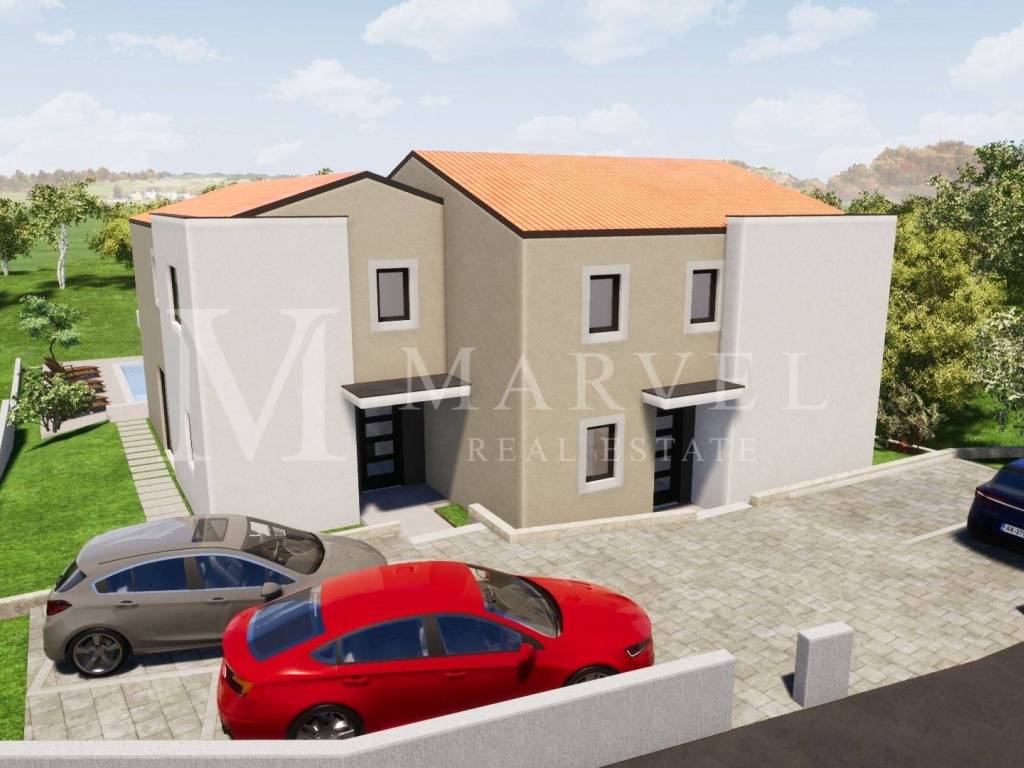 For sale is an attractive semi-detached house under construction, located in one of the most desirable locations on the Island of Krk, near Malinska. This modern property offers a total living area of 146 m, with a net living area of 118 m, making it a perfect choice for a family home or investment for tourism purposes.