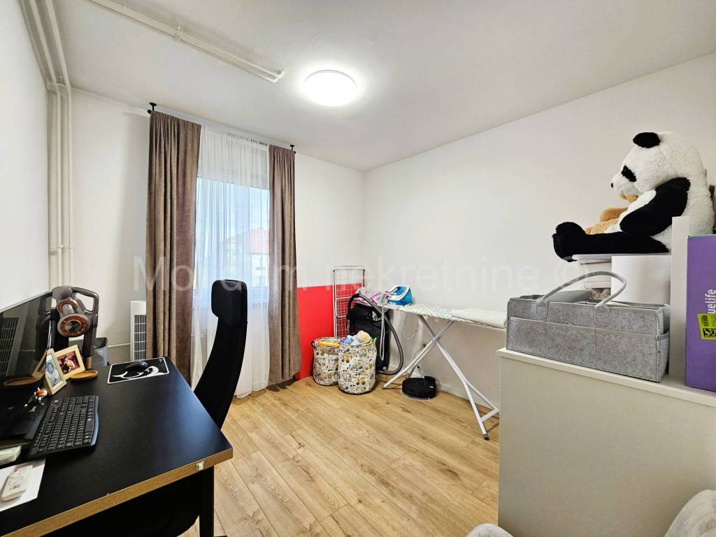 Prodaje se 3 soban stan s loggiom na 3. katu zgrade od ukupno 4 kata. Zbog svoje dvostrane orijentacije izrazito je svijetao. Smješten je u blizini vrtića, škole, trgovine, autobusne stanice te drugih bitnih sadržaja. 2012.g. kompletno su uređeni kupaona u stanu i krovište na zgradi. 2023.g. uređeni su podovi i zidovi, postavljena PVC stolarija s roletama i komarnicima te novi kuhinjski elementi s aparatima. Stan je opremljen klima uređajem. Pripada mu spremište u podrumu (cca 5m2).