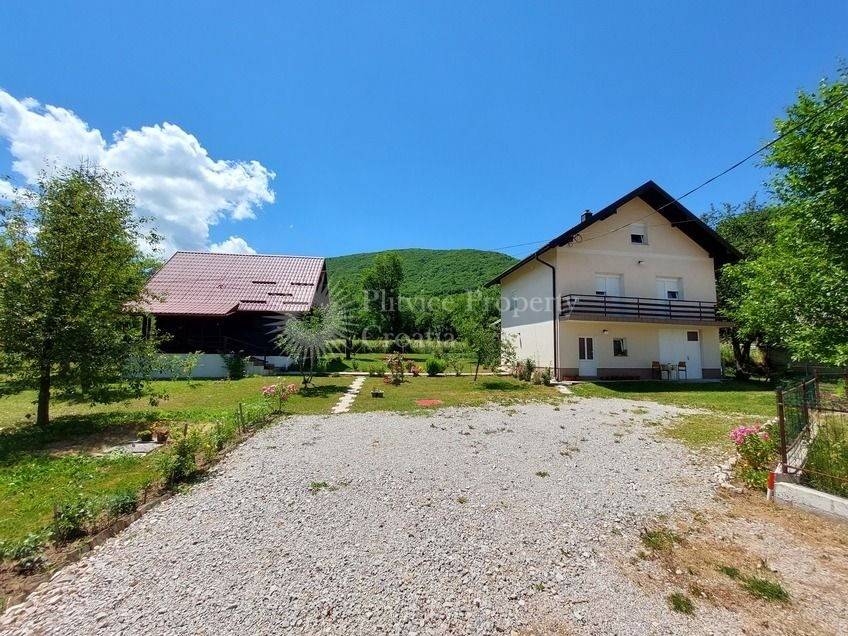 Located in the town of Korenica, this well-maintained property offers a versatile setup ideal for both private living and tourism purposes. It consists of two separate buildings and sits on two parcels totaling 1,713 m of land, all within the building zoneoffering excellent development or expansion potential.