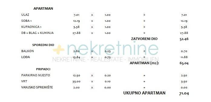 Ukupna netto prodajna površina: 71,04 m