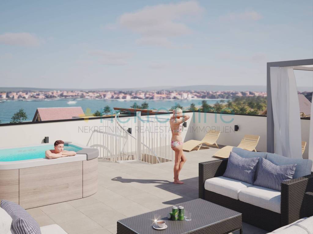 Prizemni stanovi imaju vrtove, dok se na II. katu nalaze 2 PENTHOUSE-a koji imaju krovne terase sa jacuzzijima i pogledom na cijeli zadarski arhipelag.