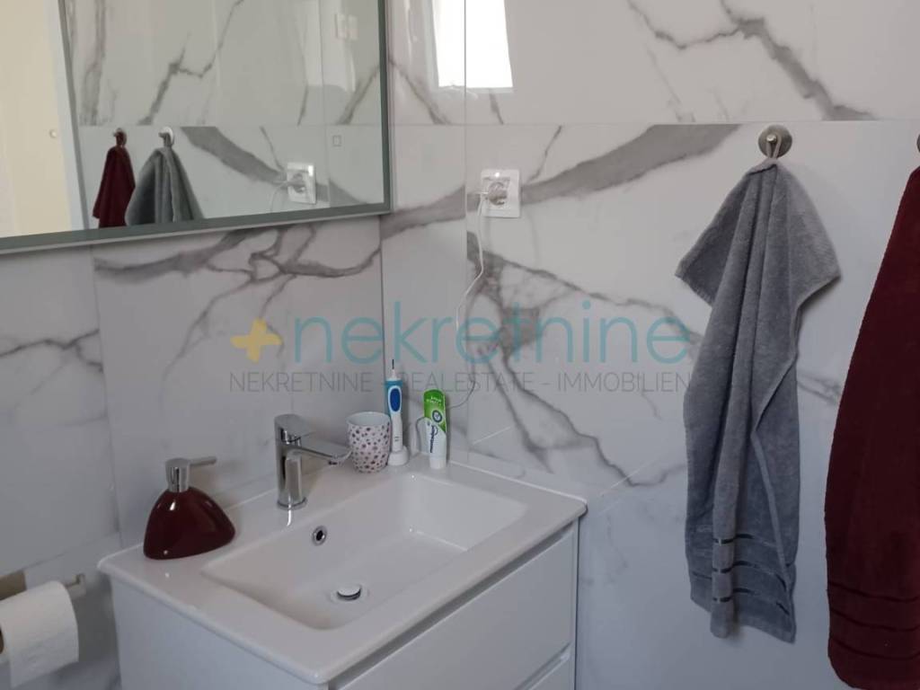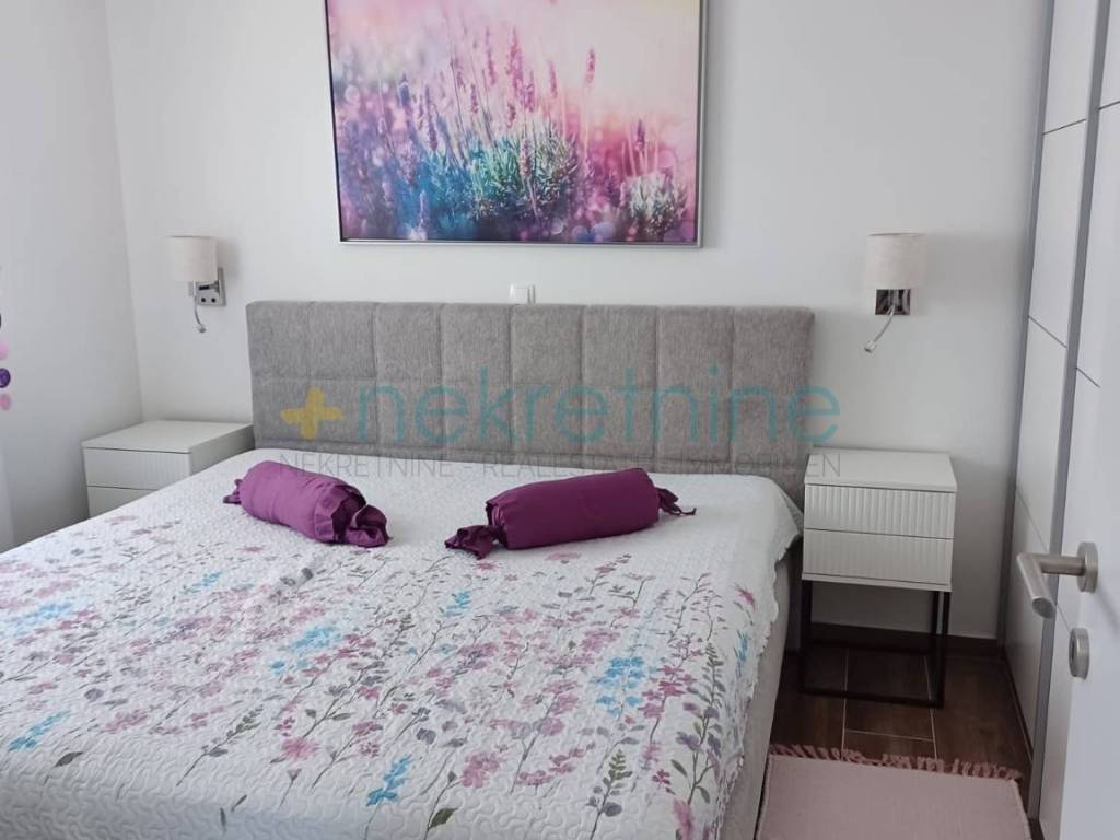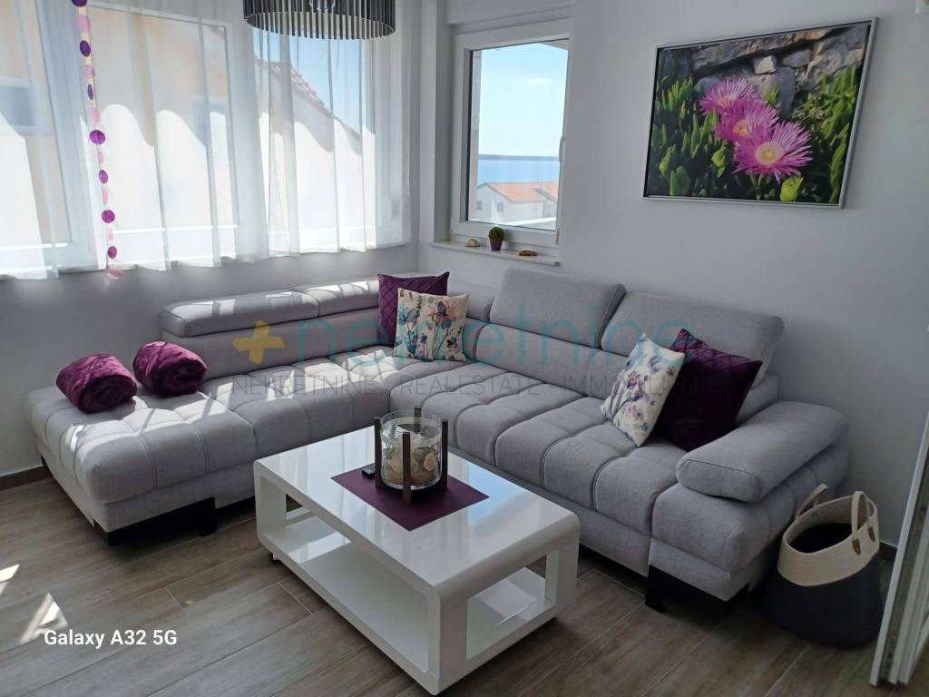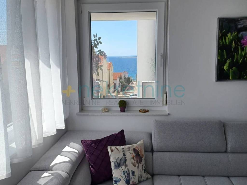 Prodaje se novi stan s dvije spavaće sobe u Mandrama na otoku Pagu, izgrađen 2024. godine. Stan je potpuno namješten novim, kvalitetnim namještajem. Kuhinja je rađena po mjeri kod stolara i opremljena perilicom posuđa. U kupaonici se nalazi nova perilica rublja. Stan ima klima uređaj, vlastitu satelitsku TV antenu, jedno parkirno mjesto i veliku podrumsku ostavu. Terasa površine 11 m2 pruža prekrasan pogled na more i idealna je za opuštanje. Ukupna korisna površina stana iznosi 66,34 m2. Udaljenost od plaže je oko 150 metara. Stan je odmah useljiv i pogodan za cjelogodišnje stanovanje ili kao investicija za turistički najam. Lokacija: Mandre, otok Pag Godina izgradnje: 2024. Broj soba: dvije spavaće sobe Površina terase: 11 m2 Korisna površina: 66,34 m2 Za više informacija i dogovor oko razgledavanja, molimo kontaktirajte nas.