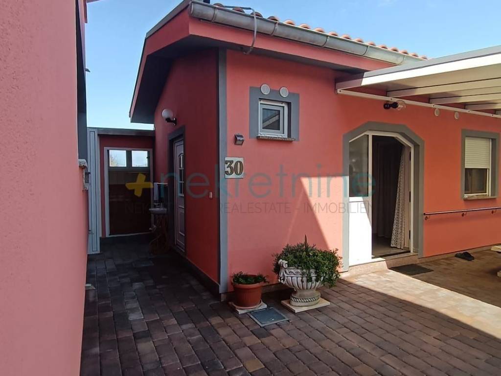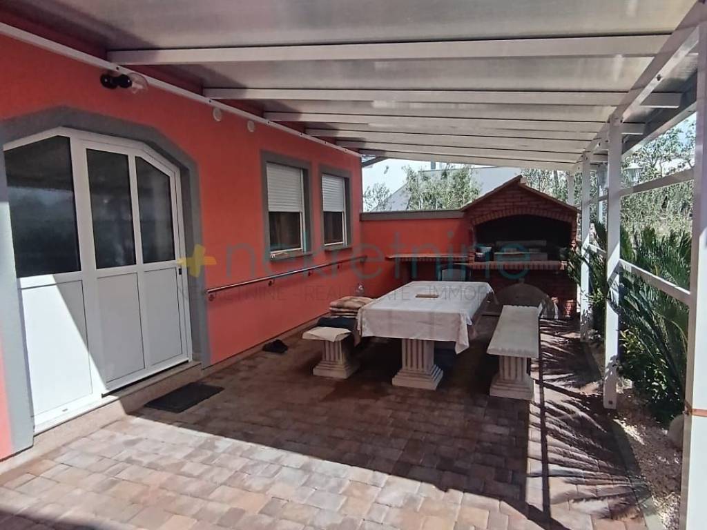Okućnica je predivno uređena sa opločnicima, posađenim mediteranskim biljem, vanjiskim roštiljem za pečenje i vanjskim tušem.