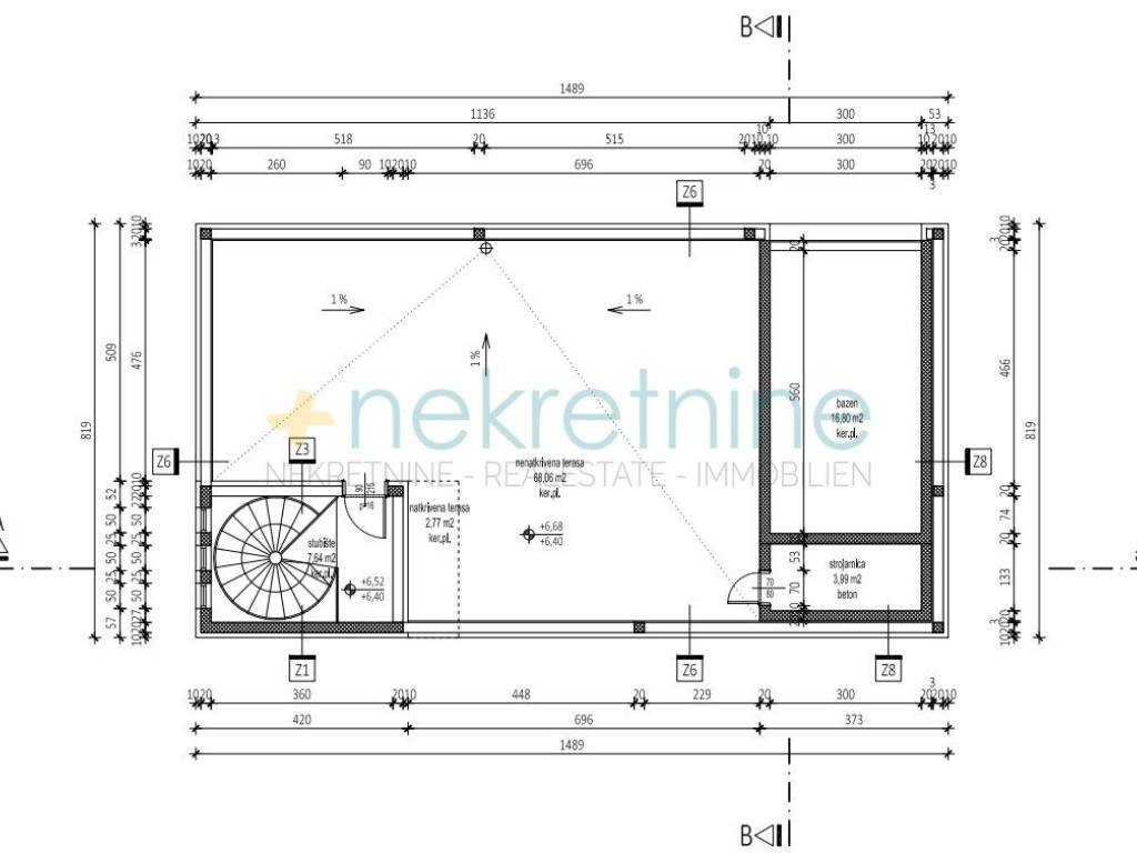 Krovna terasa: nenatkrivena terasa (NKP 17,02 m) i natkriveni dio (NKP 1,39 m) s privatnim bazenom savršeno mjesto za uživanje u suncu i pogledu.