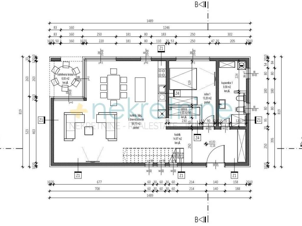 Prizemlje (100,52 m): otvoreni dnevni prostor s kuhinjom i blagovaonicom, spavaća soba, kupaonica, hodnik i ostava idealno za svakodnevni boravak i opuštanje.