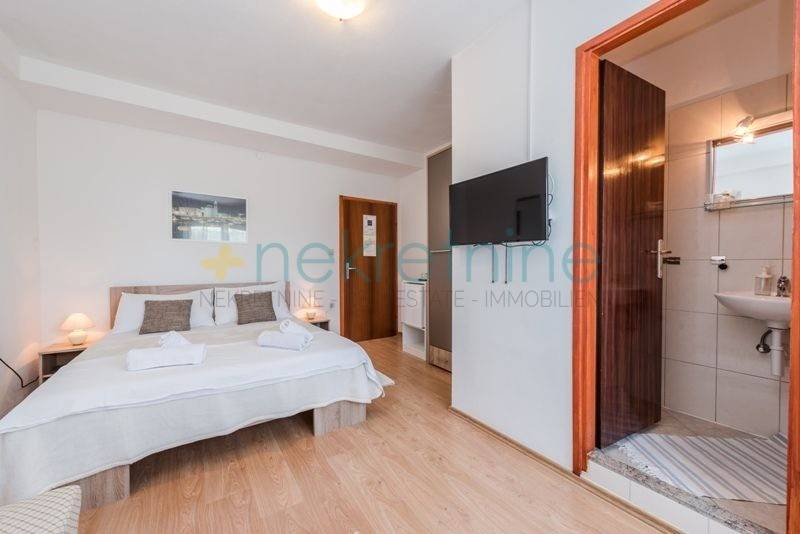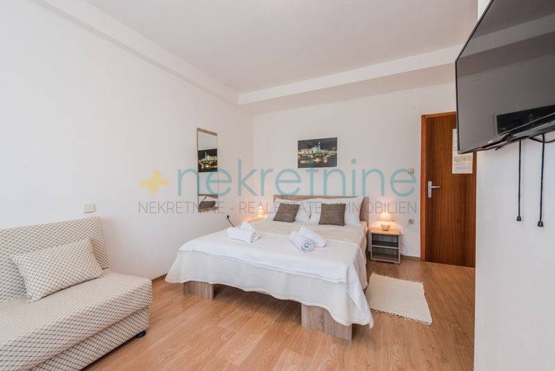 3 x Apartman za 2 + 2 osobe: (dvokrevetna soba, prostor za kuhinju-blagavaonu i dnevni boravak, tuš / WC, 2x terasa s pogledom na more, 1x velika terasa pogled u dvorište, satelitska TV, internet WiFi, klima uredjaj).