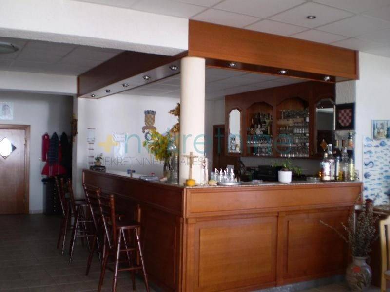 Velika sala (oko max. 150 sjedećih mjesta) + s velikom terasom (ca. 50 sjedećih mjesta), šankom, ostavom, sanitarijama (četiri WC-a, 1 dvokrevetna soba tuš / WC, velika ugostiteljska kuhinja s kompletnom opremom, te hladionicom i ostavama.