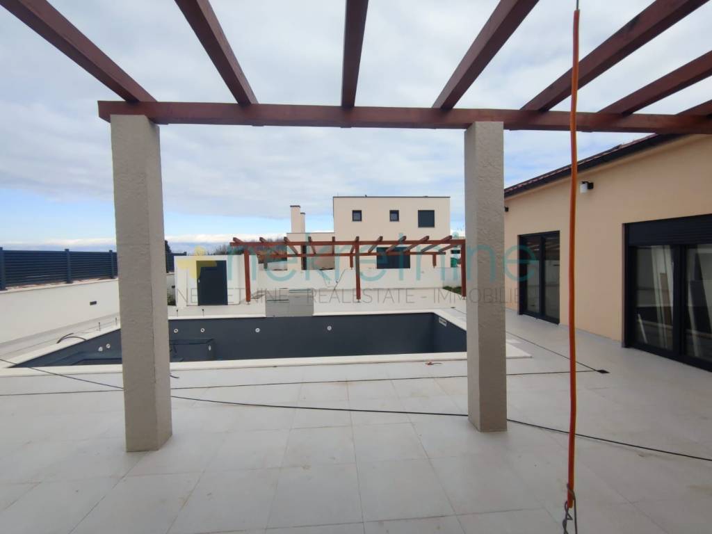 Smještena u prekrasnom dalmatinskom mjestu Privlaka pored Zadra, ova luksuzna prizemnica odiše rustikalno-mediteranskim šarmom i pruža savršen spoj elegancije, udobnosti i modernih sadržaja.