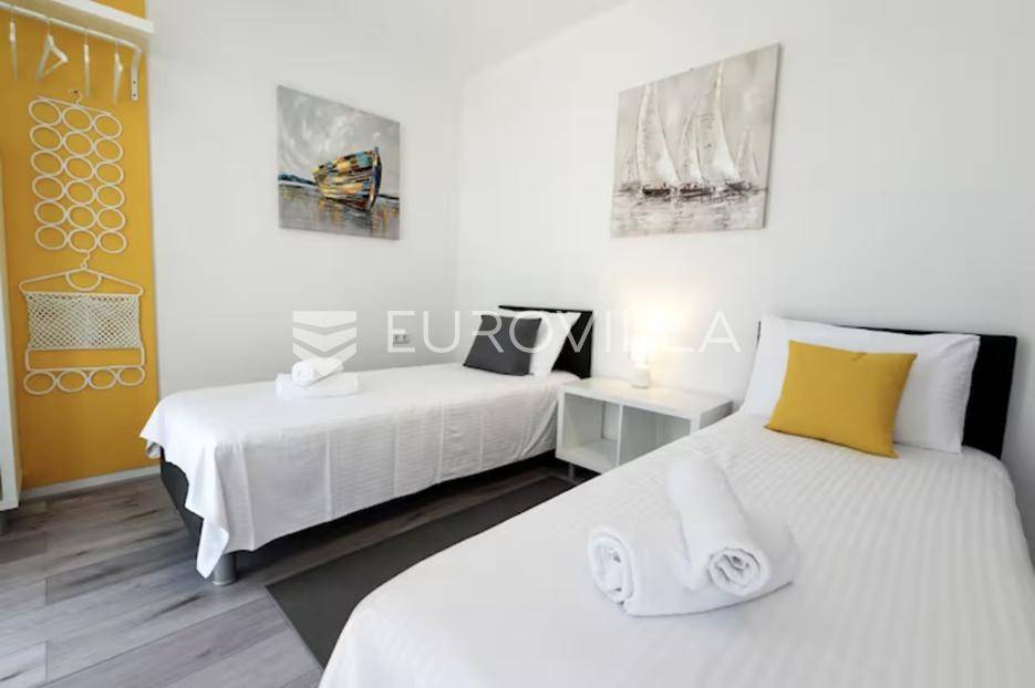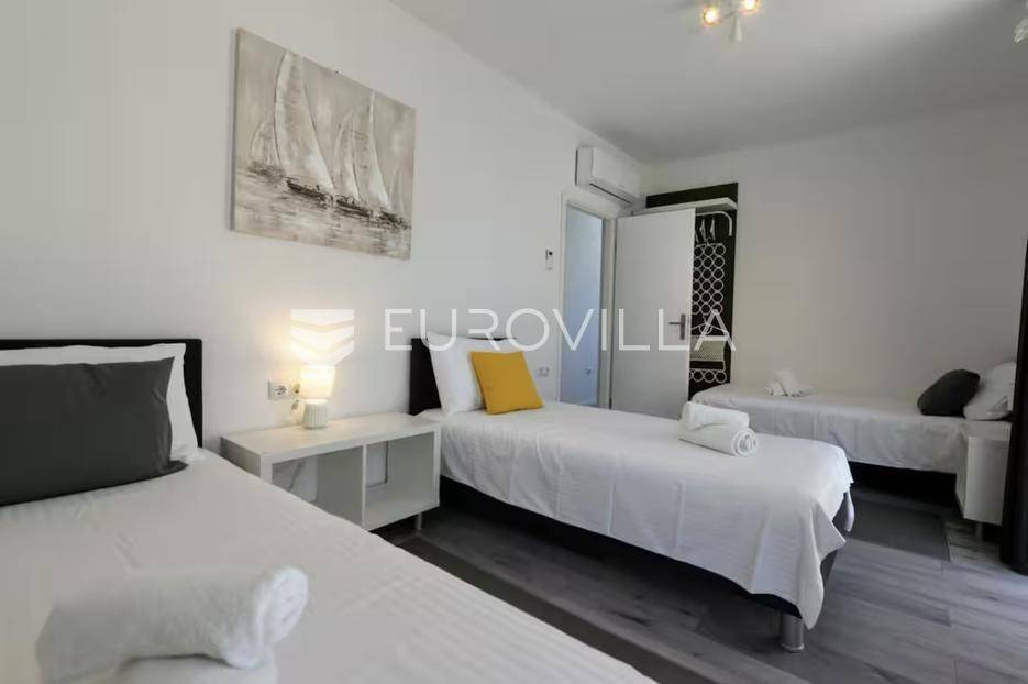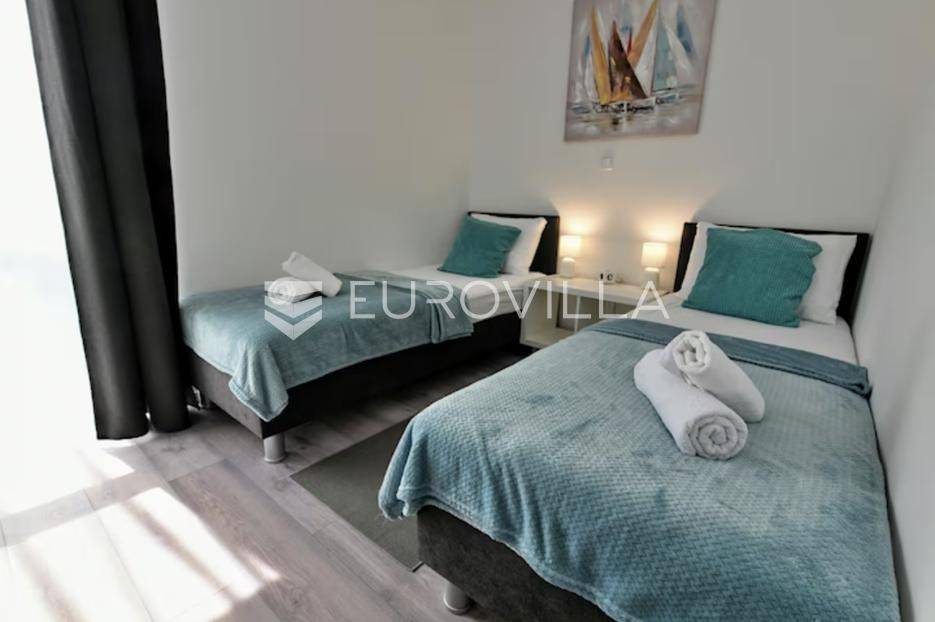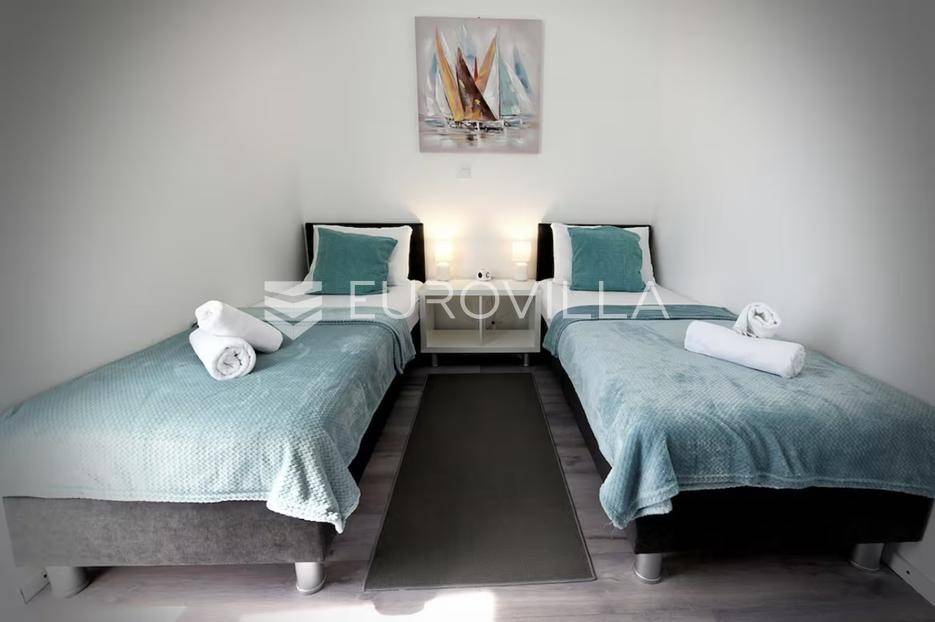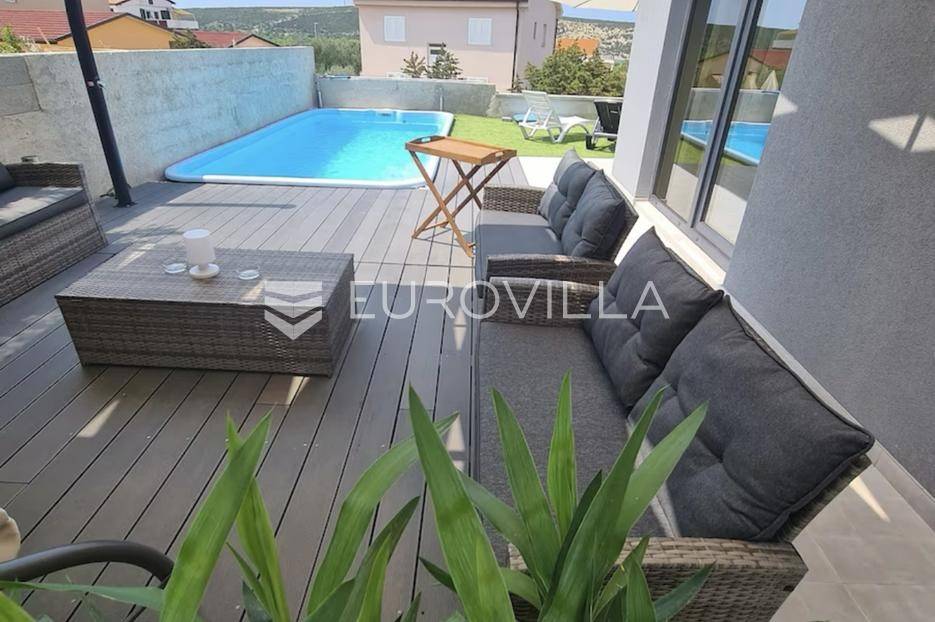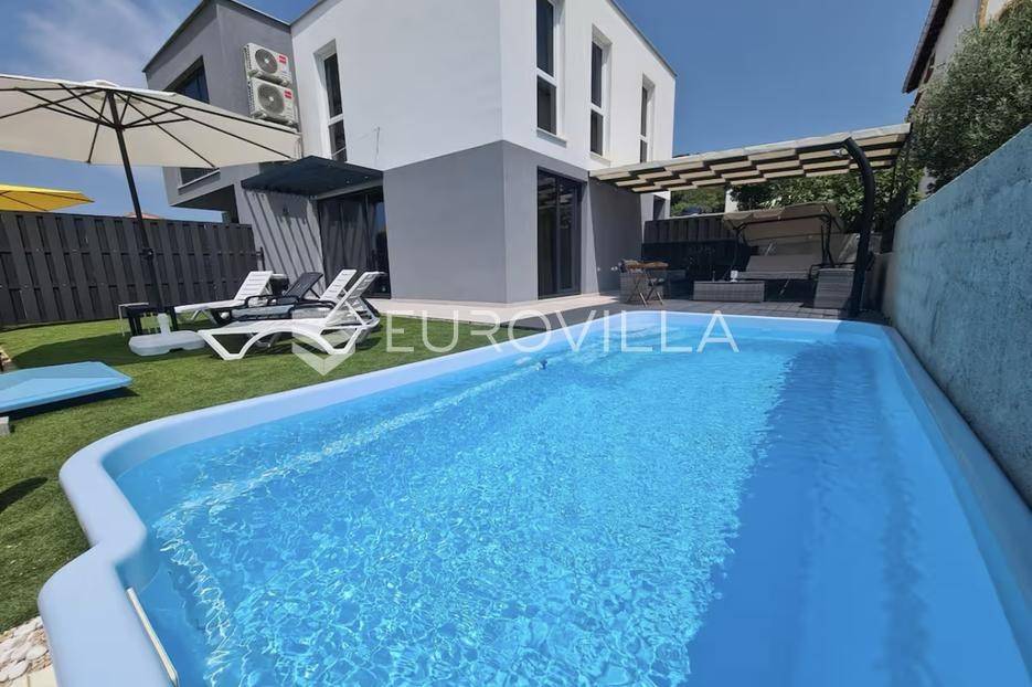 Predstavljamo vam modernu dvojnu vilu s bazenom na vhunskoj lokaciji, u mirnom turističkom mjestu otoka Paga, Staroj Novalji.Vila je udaljene svega 300 metara od mora i uređene lokalne plaže i šetnice, te se s nje pruža predivan pogled na more i otoke paškog arhipelaga.Ukupna unutarnja i stambena neto površine vile iznosi 104m2, dok u 135m2 okućnice možemo pronaći vrt, sunčalište, terasu te bazen (6m x 3m). Vili također pripadaju i 2 vanjska parkirna mjesta.Prizemlje vile se sastoji od otvorenog prostora kuhinje, blagavonice i dnevnog boravka, kupatila te unutarnjeg stepeništa kojim se penjemo do iduće etaže. Na 1. katu vile nalazimo 3 spavaće sobe te dvije kupaonice.Kuća se prodaje djelomično (većinski) namještena te spremna za useljenje. Vlasništvo je uredno, kao i sva ostala potrebna dokumentacija.Kuća je također vrhunski opremljena, te su prilikom gradnje korišteni visokokvalitetni materijali.Važno je napomenuti da je vila posljednje tri godine uspješno iznajmljivana u turističke svrhe, s vrlo visokom razinom ocijene, cijene i popunjenosti. U skladu s tim, povrat investicije ovakvih nekretnina, na ovakvim lokacijama, događa se jako brzo.Stara Novalja je malo ribarsko mjesto na jadranskoj obali Hrvatske, poznato po svojoj bogatoj povijesti i tradiciji. Ovo mjesto je bilo važno središte ribarstva i stočarstva kroz povijest. U prošlosti, Novalja je bila poznata po svojim sirima, maslinama i ribarskim brodovima. Danas je popularno turističko odredište koje spaja prirodne ljepote s kulturnom baštinom.Obratite te nam se kako bismo vam dali više informacija te dogovorili razgledavanje nekretnine.